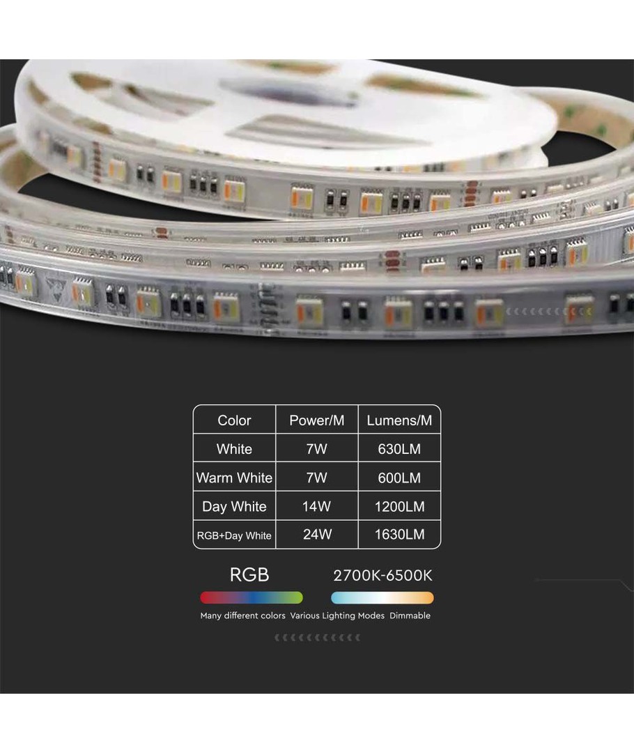 Of het nu voor thuisgebruik of commerciële doeleinden is, deze RGB+CCT 24W/m LED-strip biedt een flexibele oplossing voor wie wil experimenteren met zowel RGB-licht als warm tot koel wit licht (2700-6500K).