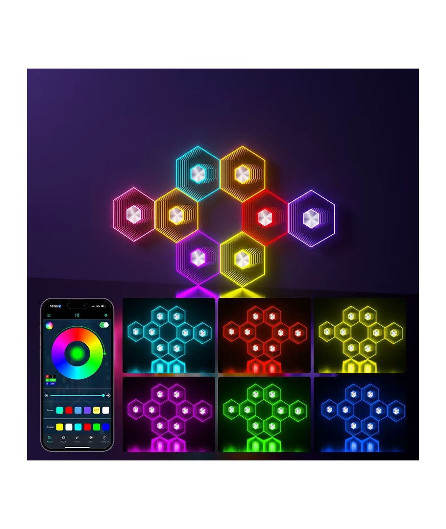 Ervaar een nieuwe dimensie van verlichting met Hexa-Light RGBIC, waar de combinatie van moderne technologie en stijlvol design je onbeperkte mogelijkheden biedt om je ruimte te personaliseren.