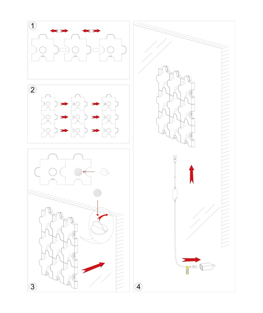 De Hexa-Light RGBIC set wordt eenvoudig aangesloten op een 5V voeding via USB, wat de installatie zowel simpel als snel maakt. Het is de ideale keuze voor wie een modern en interactief lichtontwerp wil realiseren zonder gedoe met ingewikkelde installatie.