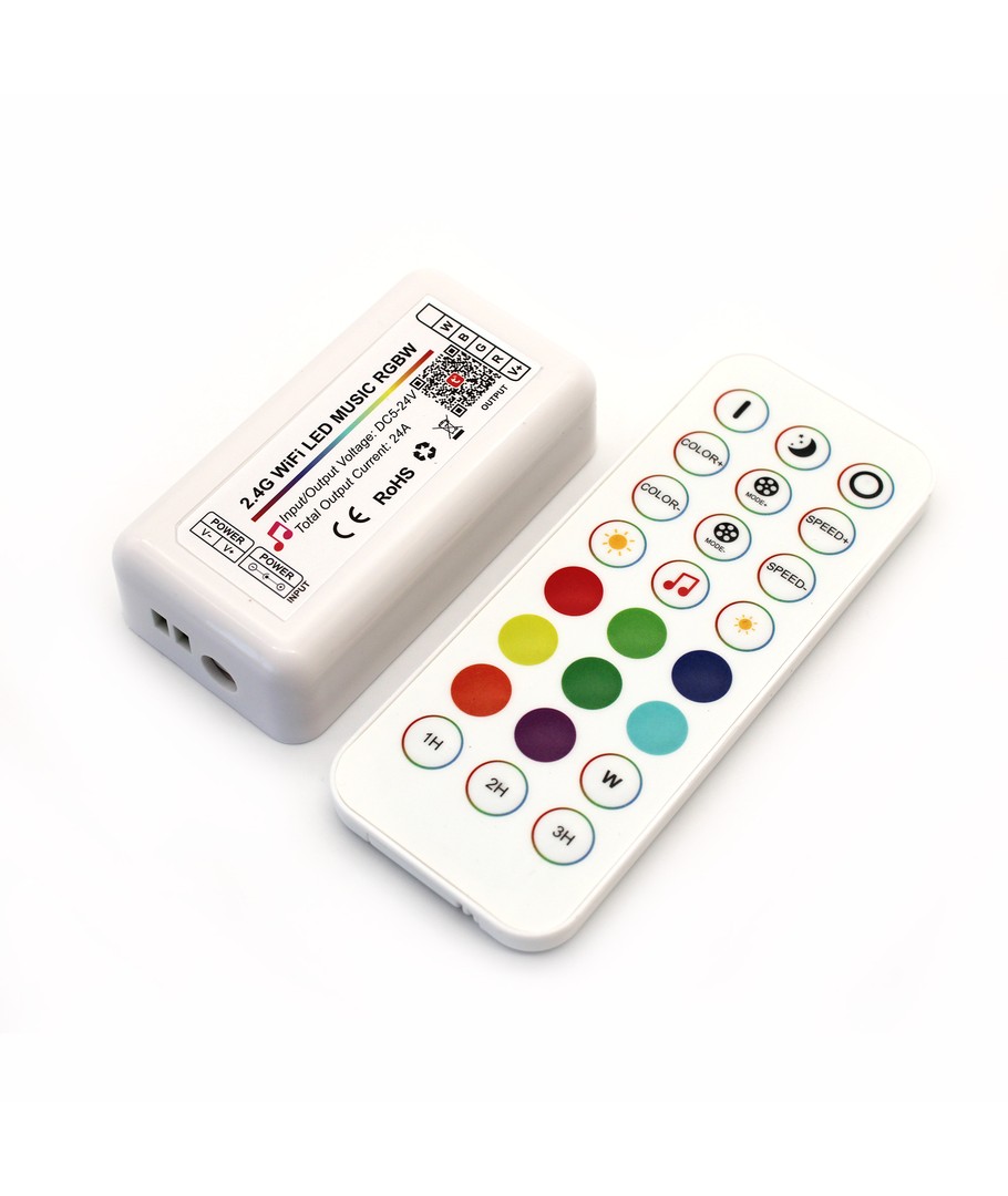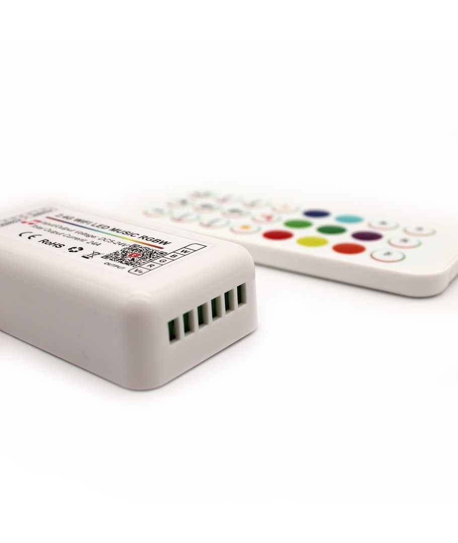 De controller geeft je de mogelijkheid om RGB+W LED-strips te bedienen via een app of Smart Home.