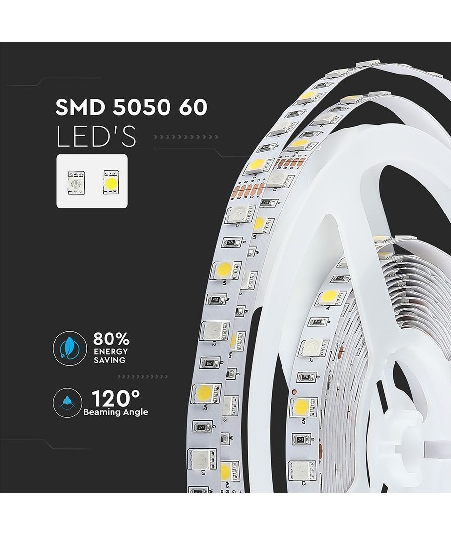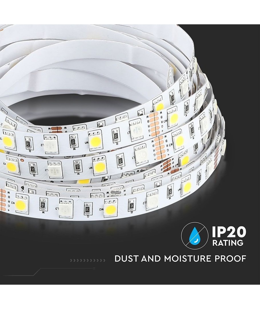 Transformeer uw huis of commerciële ruimte met de revolutionaire 10,8W/m RGB+NW LED strip van V-Tac, die kleurveranderend RGB-licht combineert met natuurlijk wit (NW) voor een veelzijdige lichtuitstraling. Met deze LED strip kunt u alles creëren, van sfeervolle ambiance tot scherp werklicht en alles daartussenin.