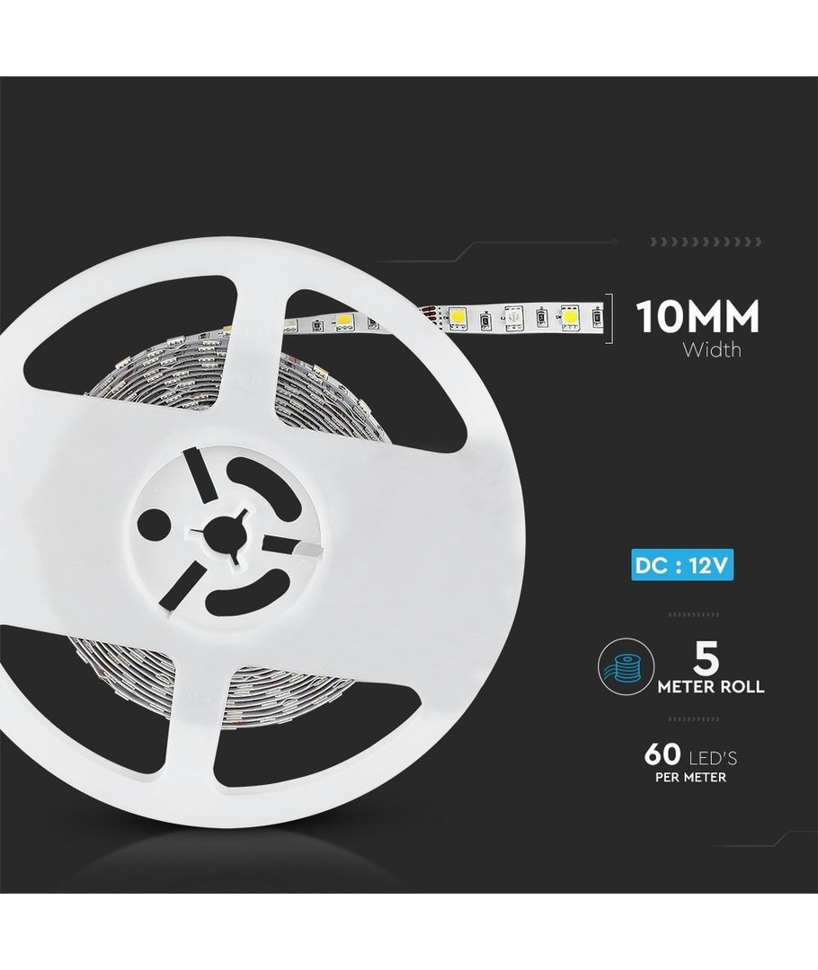 Met de V-Tac 10,8W/m RGB+NW LED strip zijn er geen grenzen aan hoe u uw omgeving kunt personaliseren. Creëer een prachtige sfeer en voeg een vleugje elegantie toe aan elke ruimte met deze veelzijdige en efficiënte verlichtingsoplossing.