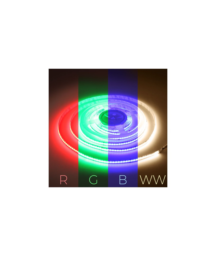 Ervaar de nieuwe standaard in LED-verlichting met deze 5m RGB+WW COB-LED strip. Perfect om de juiste sfeer te creëren in elke ruimte, 20W/meter LED Strip biedt veelzijdigheid en krachtige lichtverdeling.