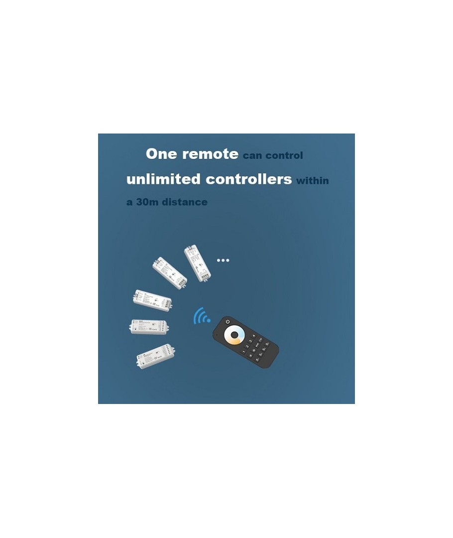 Bedien 12V, 24V, 230V & dimmen, CCT, RGB – alles met dezelfde afstandsbediening.