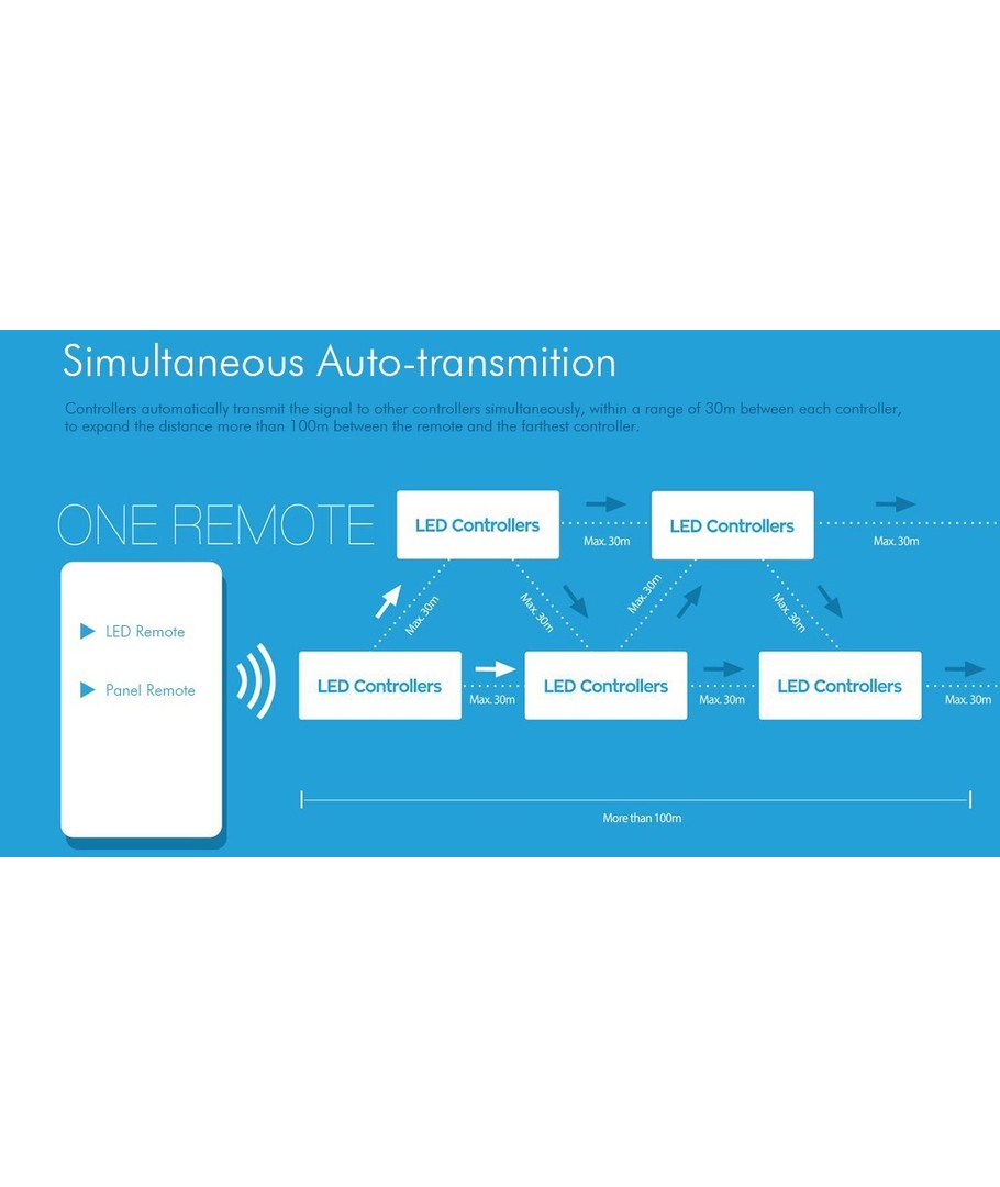 Bedien 12V, 24V, 230V & dimmen, CCT, RGB – alles met dezelfde afstandsbediening.