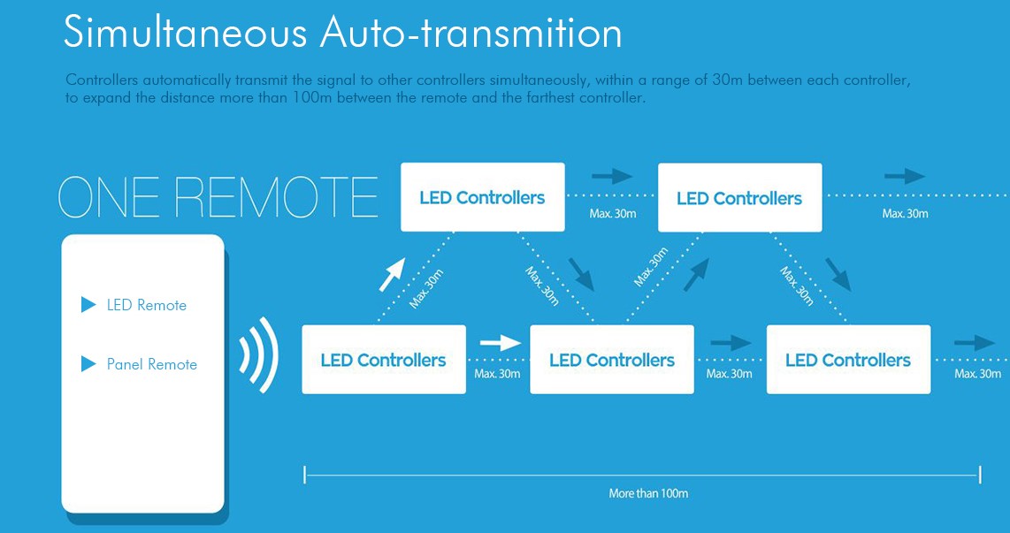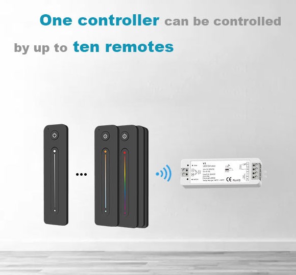Bedien 12V, 24V, 230V & dimmen, CCT, RGB – alles met dezelfde afstandsbediening.