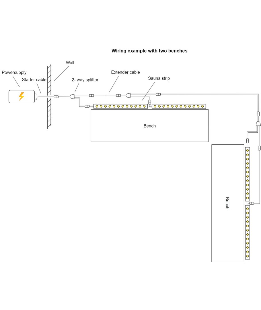 Startkabel wordt gebruikt om de sauna-strip aan de voeding te verbinden: