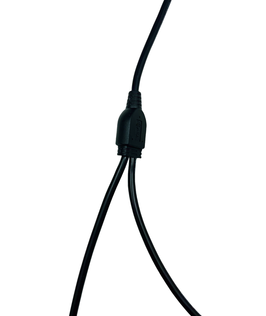 Het splitstuk zit in het midden van de kabel en is ongeveer 5 cm lang.