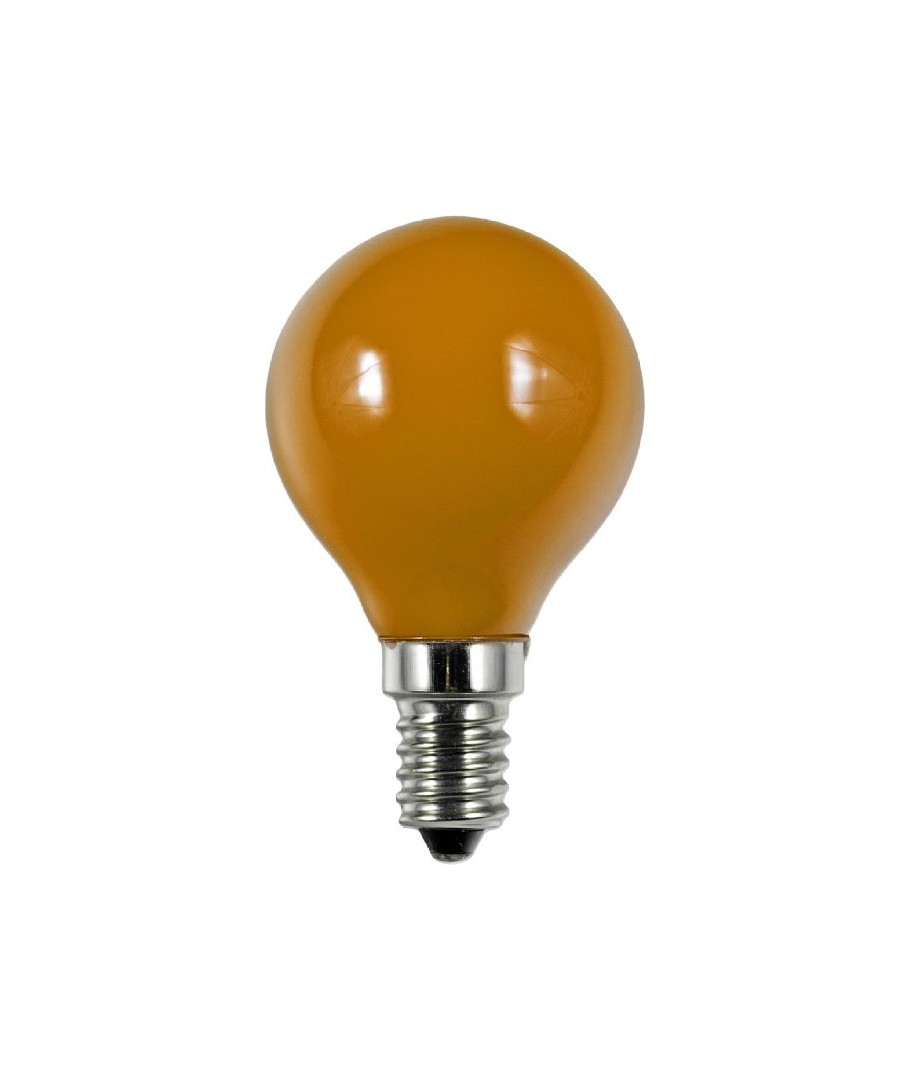 E14 1W LED kogellamp - G45, Oranje, Party Colour Premium- Hoogte: 75 mm, wat hem compact en eenvoudig te installeren maakt.