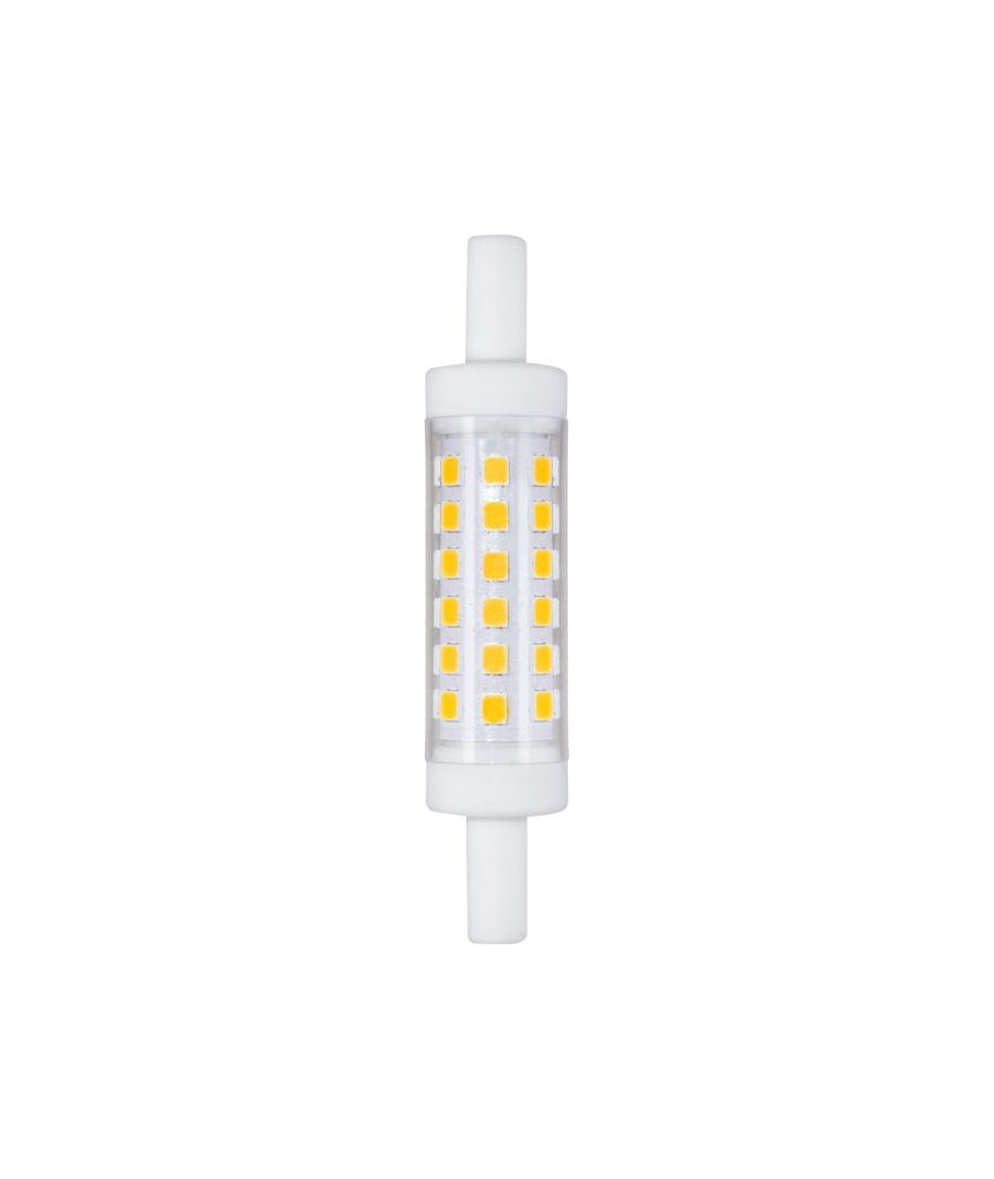 De R7S 78mm / 5W LED-lamp combineert energie-efficiëntie met warme verlichting in een helder glasontwerp.