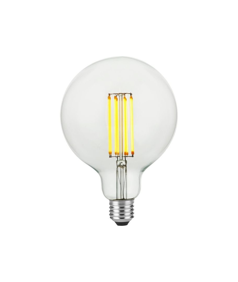 E27 7W dimbare LED globe lamp - G125, filament, 2200K, 600lm met helder glas zorgt voor een warme verlichting.- Lichtsterkte: 600 lumen, wat zorgt voor een sterke en heldere verlichting.