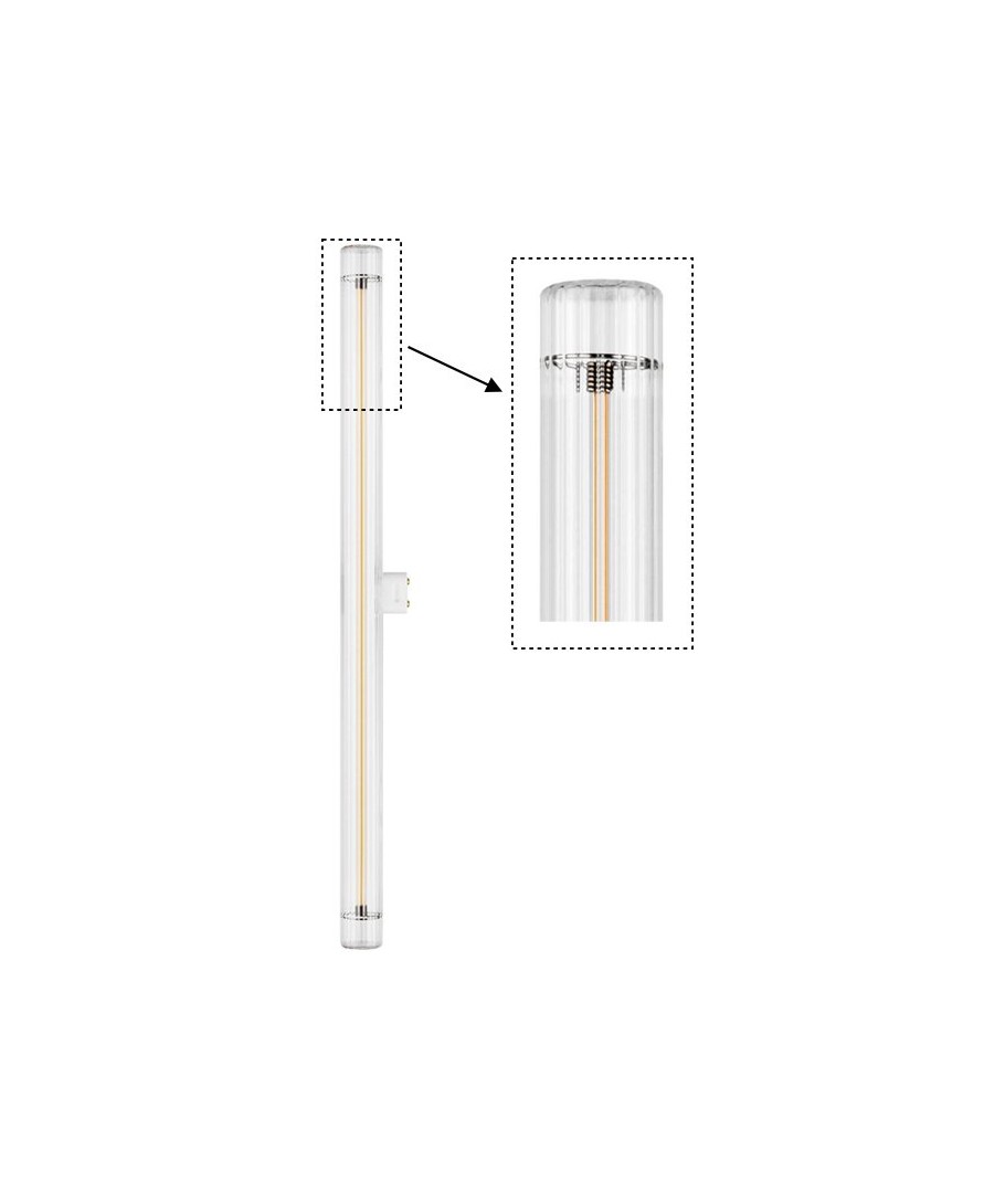 De S14d 4W dimbare LED filament lamp biedt sfeervolle verlichting met een helder glasontwerp.