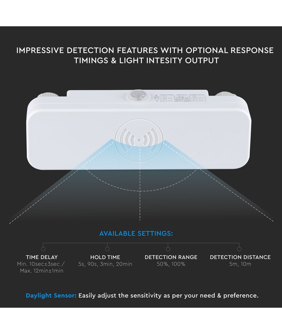 Al met al is deze microgolfsensor een veelzijdige en robuuste oplossing die zorgt voor efficiënte lichtregeling en energiebesparing in zowel privé- als commerciële omgevingen.