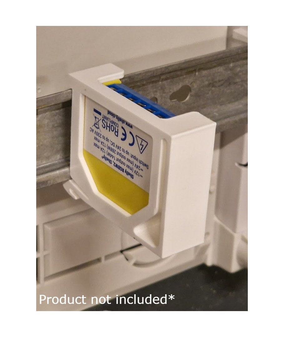 Onze DIN-rail adapter is ontworpen om de installatie en organisatie van je Shelly-apparaten te vereenvoudigen. Het stelt je in staat om de apparaten eenvoudig te monteren en demonteren van de DIN-rail, wat ideaal is voor doe-het-zelvers en professionele installateurs die een flexibele en aanpasbare opstelling willen.
