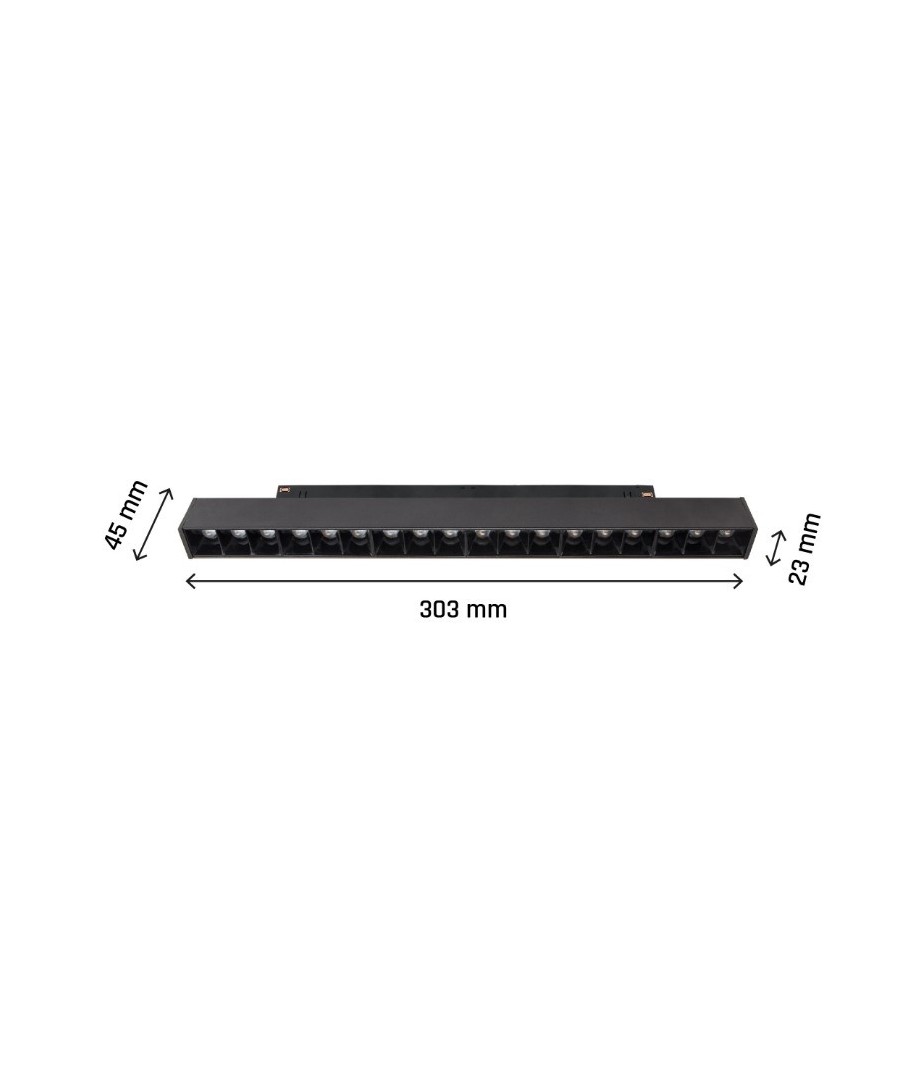 Met een compacte constructie van 23 x 303 x 42 mm is deze lichtbron gemakkelijk te integreren in veel verschillende ontwerpomgevingen. De elegante zwarte kleur zorgt voor een tijdloze esthetiek die zowel in privéwoningen als professionele omgevingen gemakkelijk past.
