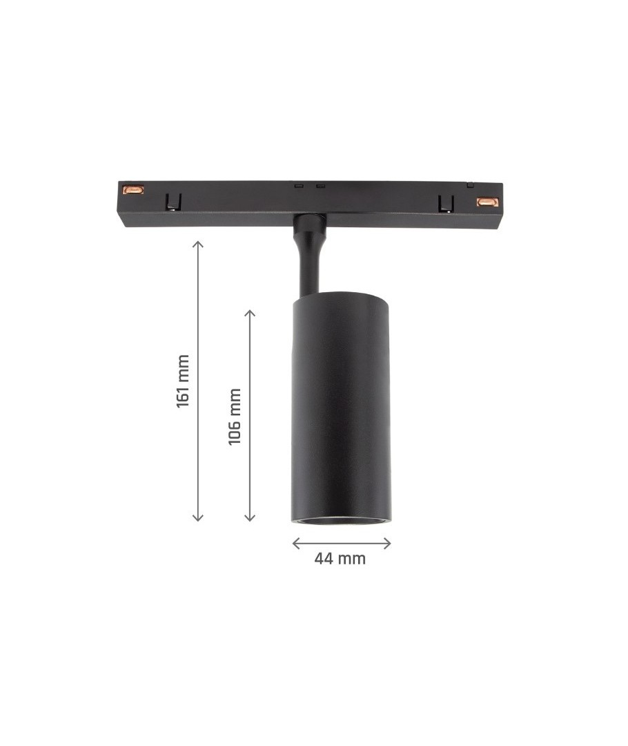 Ontworpen in een elegant zwarte afwerking, past deze rails spot perfect in een modern interieur. De discrete afmeting van 178 x Ø44 mm maakt eenvoudige integratie in verschillende ontwerpconcepten mogelijk zonder de omgeving te domineren.