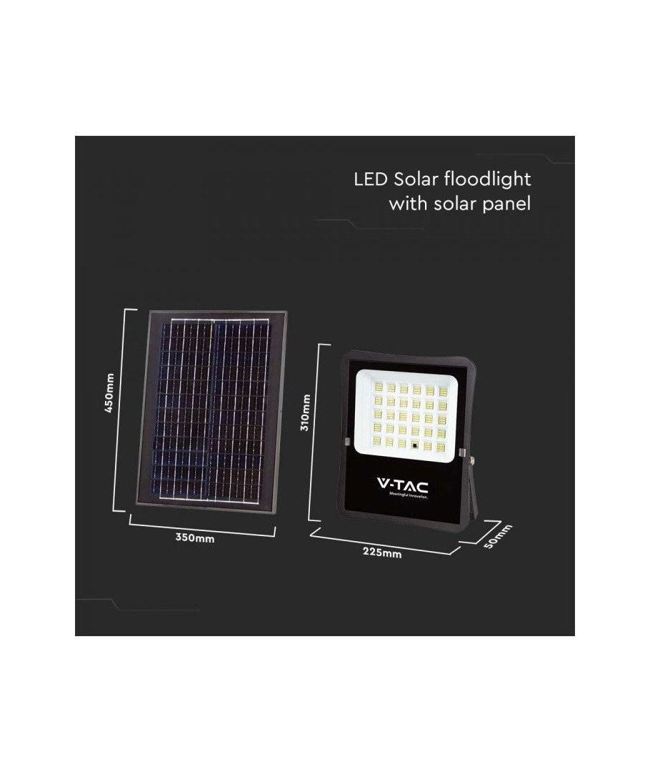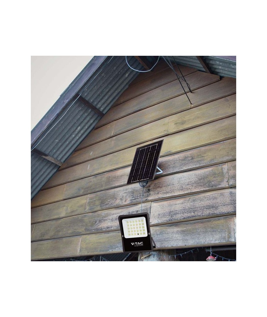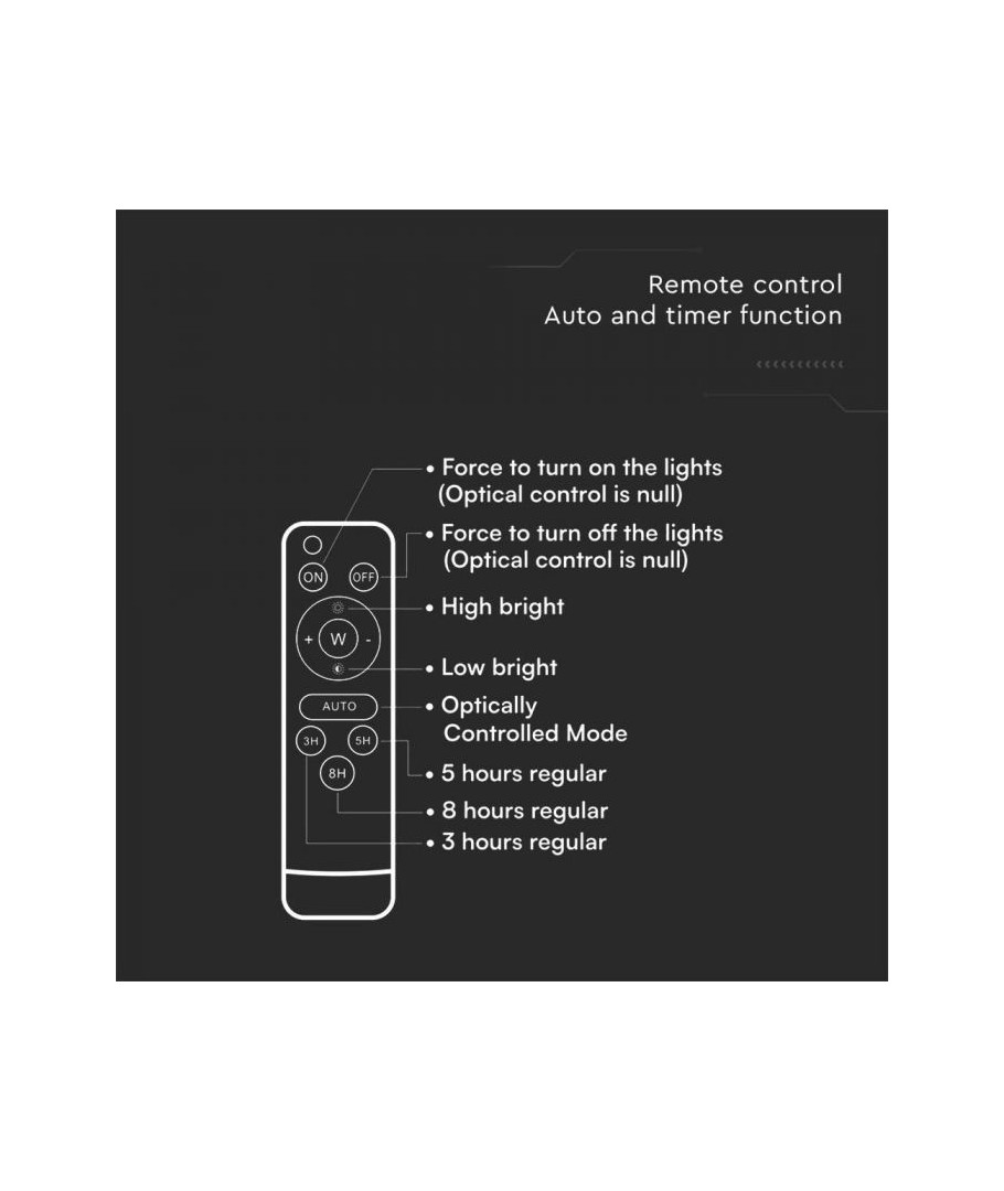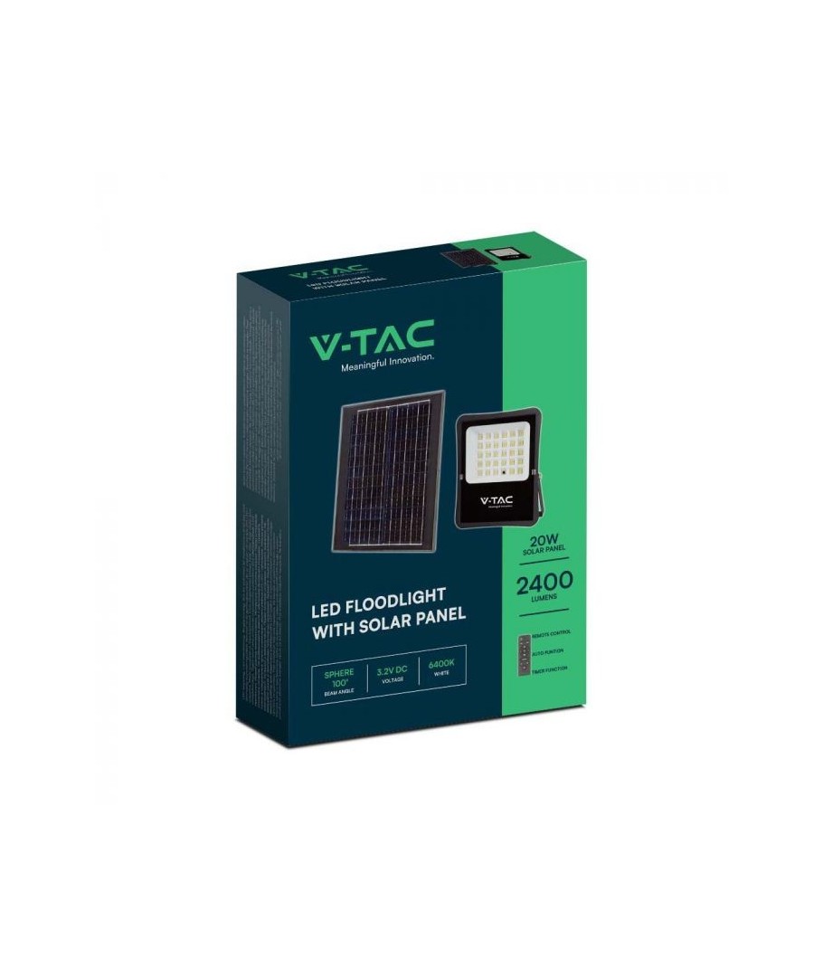 V-Tac 20W LED Zonnecel schijnwerper - Zwart, een praktische en energiezuinige oplossing voor buitenverlichting. Deze schijnwerper bevat een zonnecel en afstandsbediening en is ontworpen om alle weersomstandigheden te weerstaan met zijn IP65-classificatie. Hij heeft ook een handige timerfunctie waarmee je hem automatisch kunt laten uitschakelen na een bepaalde periode. Met een volledige oplaadtijd van slechts 4 uur kan deze schijnwerper 8 uur licht leveren. Hij wordt ook geleverd met een 5 meter lange kabel, die je flexibiliteit geeft om hem te plaatsen waar je hem nodig hebt.