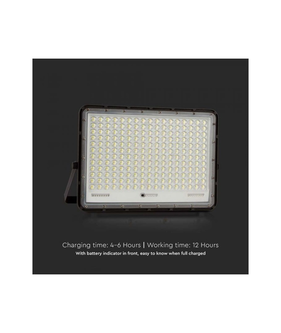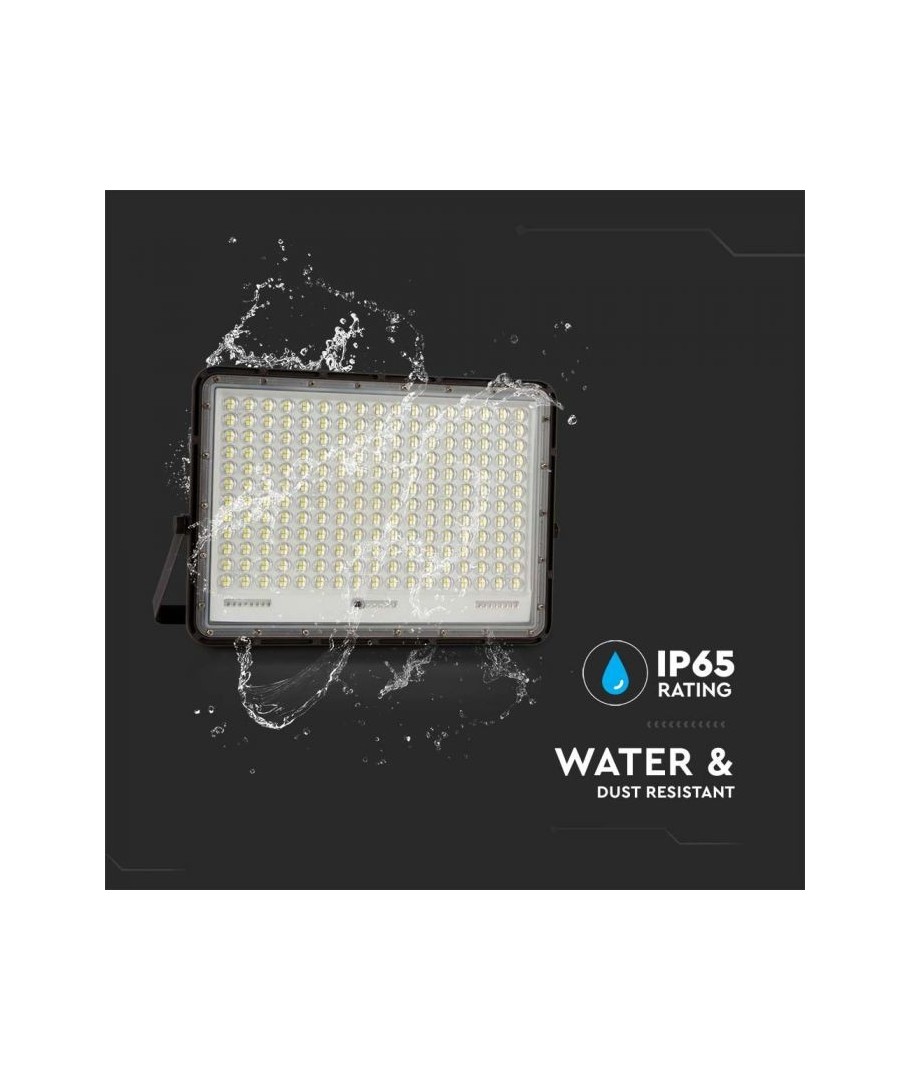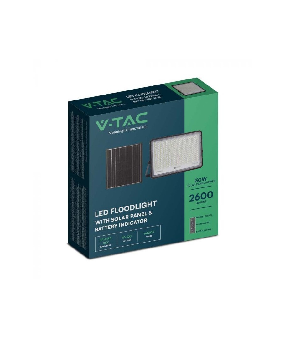 V-Tac 30W LED Zonnecel schijnwerper - Zwart, een praktische en energiezuinige oplossing voor buitenverlichting. Deze schijnwerper bevat een zonnecel en afstandsbediening en is ontworpen om alle weersomstandigheden te weerstaan met zijn IP65-classificatie. Hij heeft ook een handige timerfunctie waarmee je hem automatisch kunt laten uitschakelen na een bepaalde periode. Met een volledige oplaadtijd van slechts 4-6 uur kan deze schijnwerper 12 uur licht leveren. Hij wordt ook geleverd met een 3 meter lange kabel, die je flexibiliteit geeft om hem te plaatsen waar je hem nodig hebt.