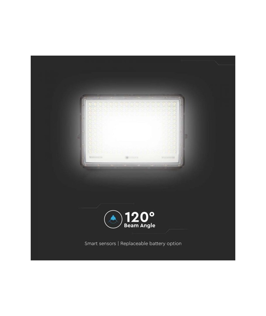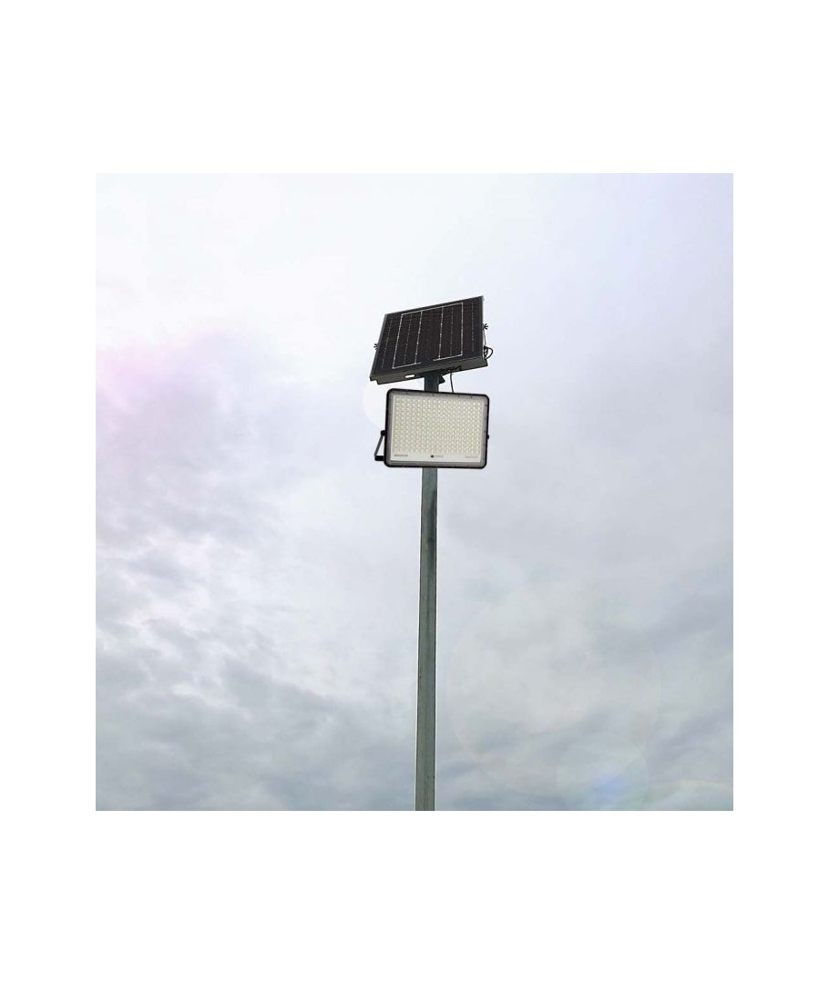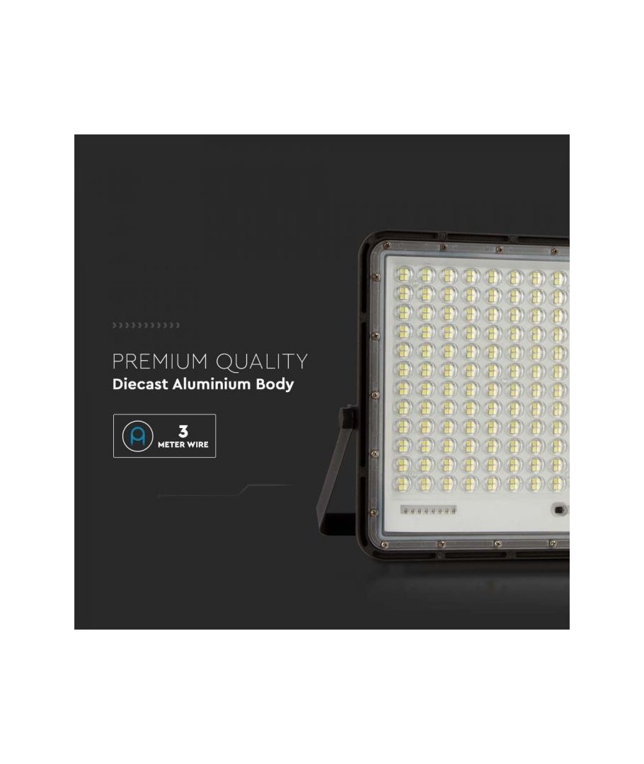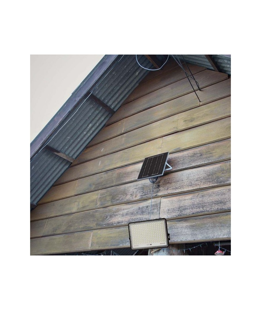 V-Tac 30W LED Zonnecel schijnwerper - Zwart, een praktische en energiezuinige oplossing voor buitenverlichting. Deze schijnwerper bevat een zonnecel en afstandsbediening en is ontworpen om alle weersomstandigheden te weerstaan met zijn IP65-classificatie. Hij heeft ook een handige timerfunctie waarmee je hem automatisch kunt laten uitschakelen na een bepaalde periode. Met een volledige oplaadtijd van slechts 4-6 uur kan deze schijnwerper 12 uur licht leveren. Hij wordt ook geleverd met een 3 meter lange kabel, die je flexibiliteit geeft om hem te plaatsen waar je hem nodig hebt.