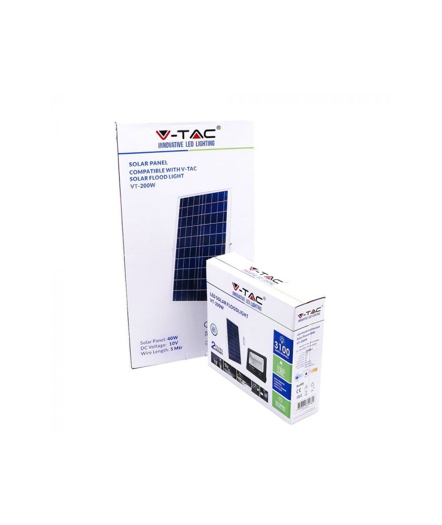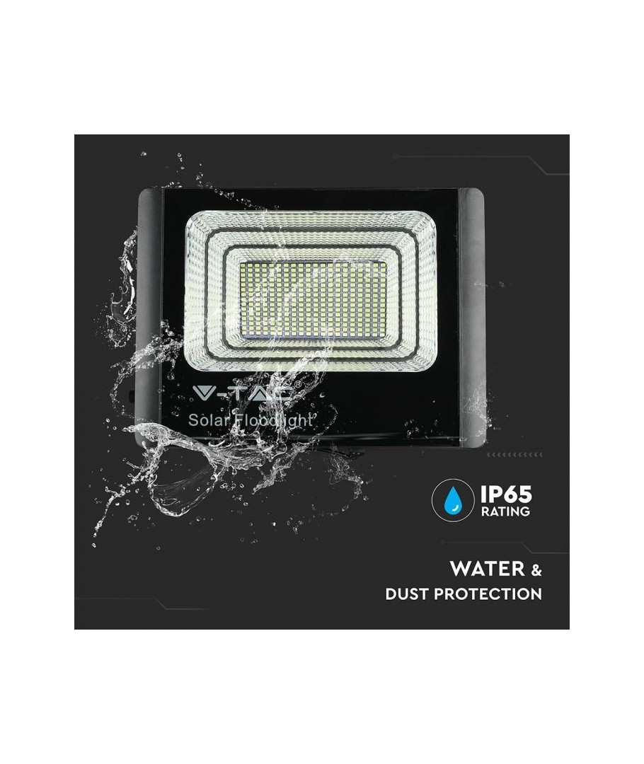 V-Tac 40W LED Zonnecel schijnwerper - Zwart, een praktische en energiezuinige oplossing voor buitenverlichting. Deze schijnwerper bevat een zonnepaneel en afstandsbediening en is ontworpen om alle weersomstandigheden te weerstaan met zijn IP65-classificatie. Hij heeft ook een handige timerfunctie waarmee je hem automatisch kunt laten uitschakelen na een bepaalde periode. Met een volledige oplaadtijd van slechts 4 uur kan deze schijnwerper 8 uur licht leveren. Hij wordt ook geleverd met een 5 meter lange kabel, die je flexibiliteit geeft om hem te plaatsen waar je hem nodig hebt.