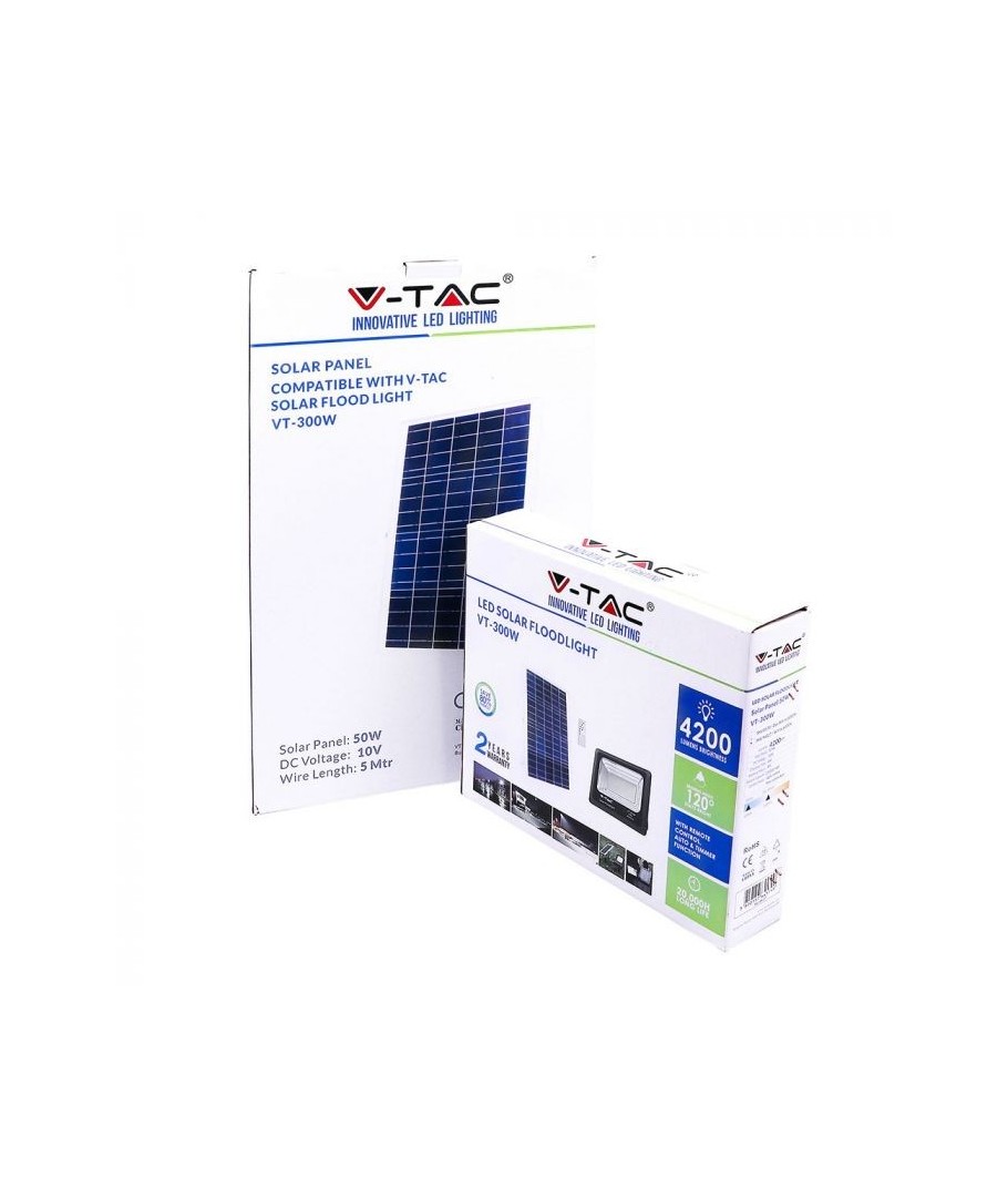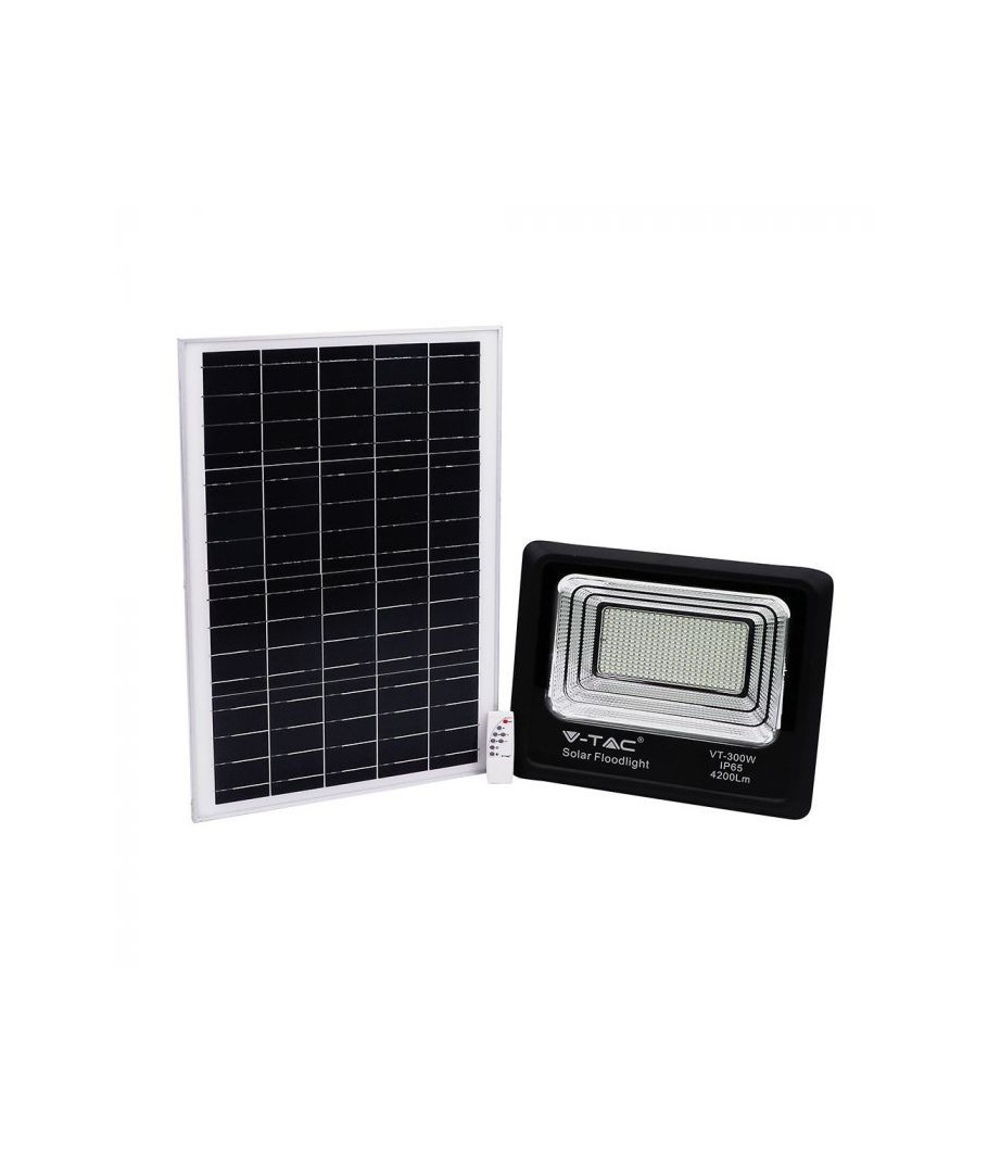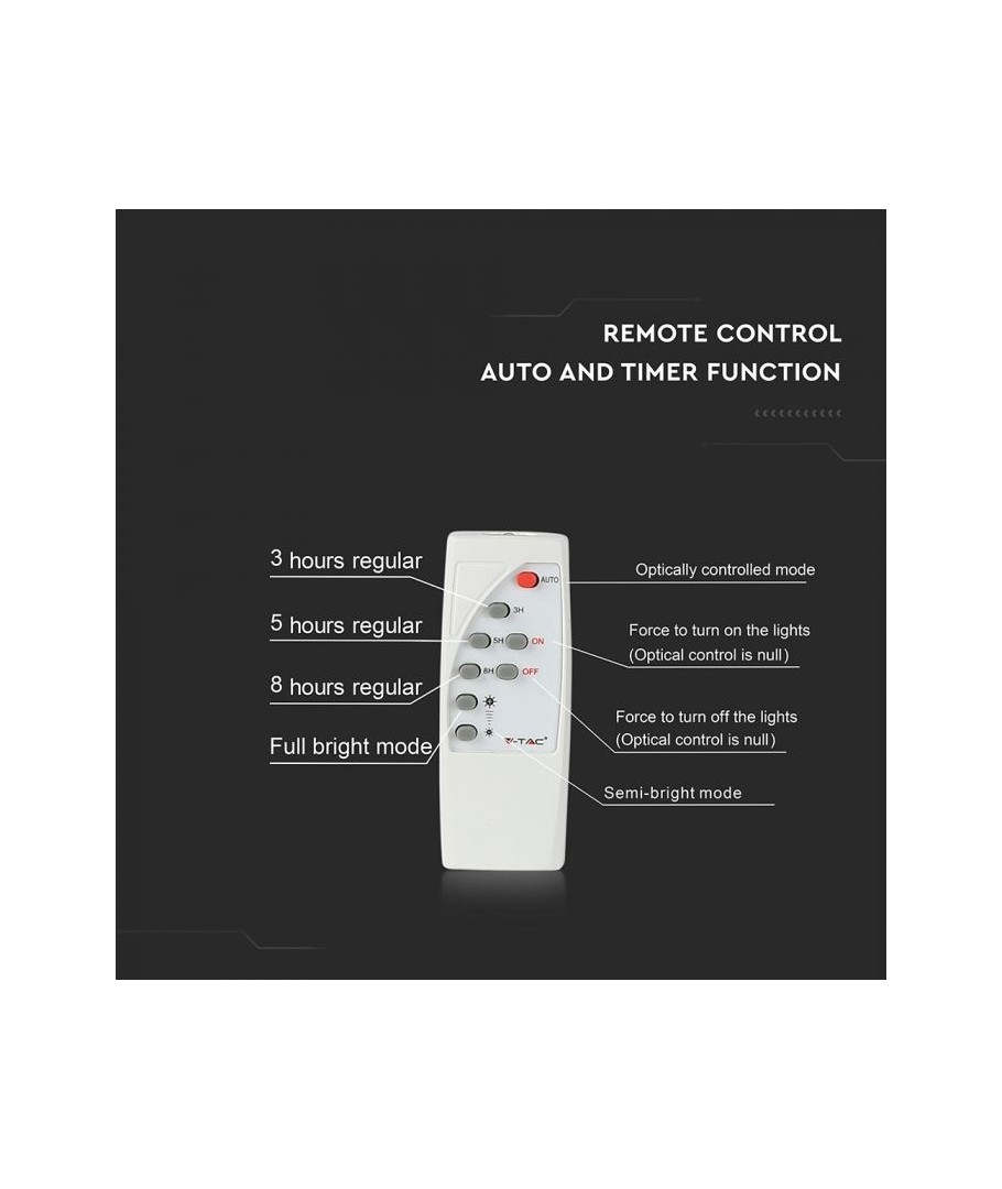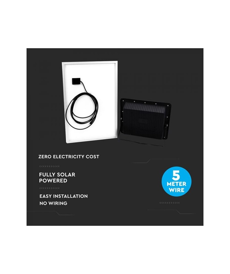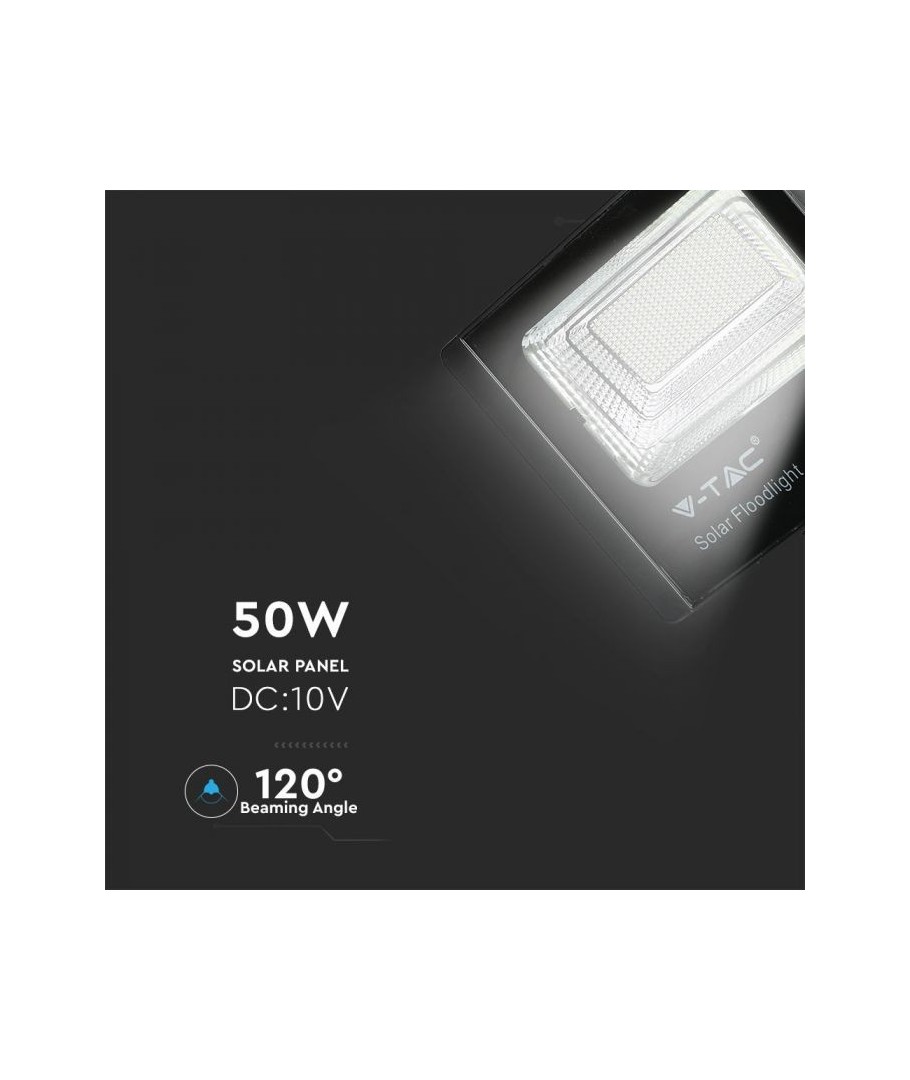 V-Tac 50W LED Zonnecel schijnwerper - Zwart, een praktische en energiezuinige oplossing voor buitenverlichting. Deze schijnwerper bevat een zonnepaneel en afstandsbediening en is ontworpen om alle weersomstandigheden te weerstaan met zijn IP65-classificatie. Hij heeft ook een handige timerfunctie waarmee je hem automatisch kunt laten uitschakelen na een bepaalde periode. Met een volledige oplaadtijd van slechts 4 uur kan deze schijnwerper 8 uur licht leveren. Hij wordt ook geleverd met een 5 meter lange kabel, wat je flexibiliteit geeft om hem te plaatsen waar je hem nodig hebt.