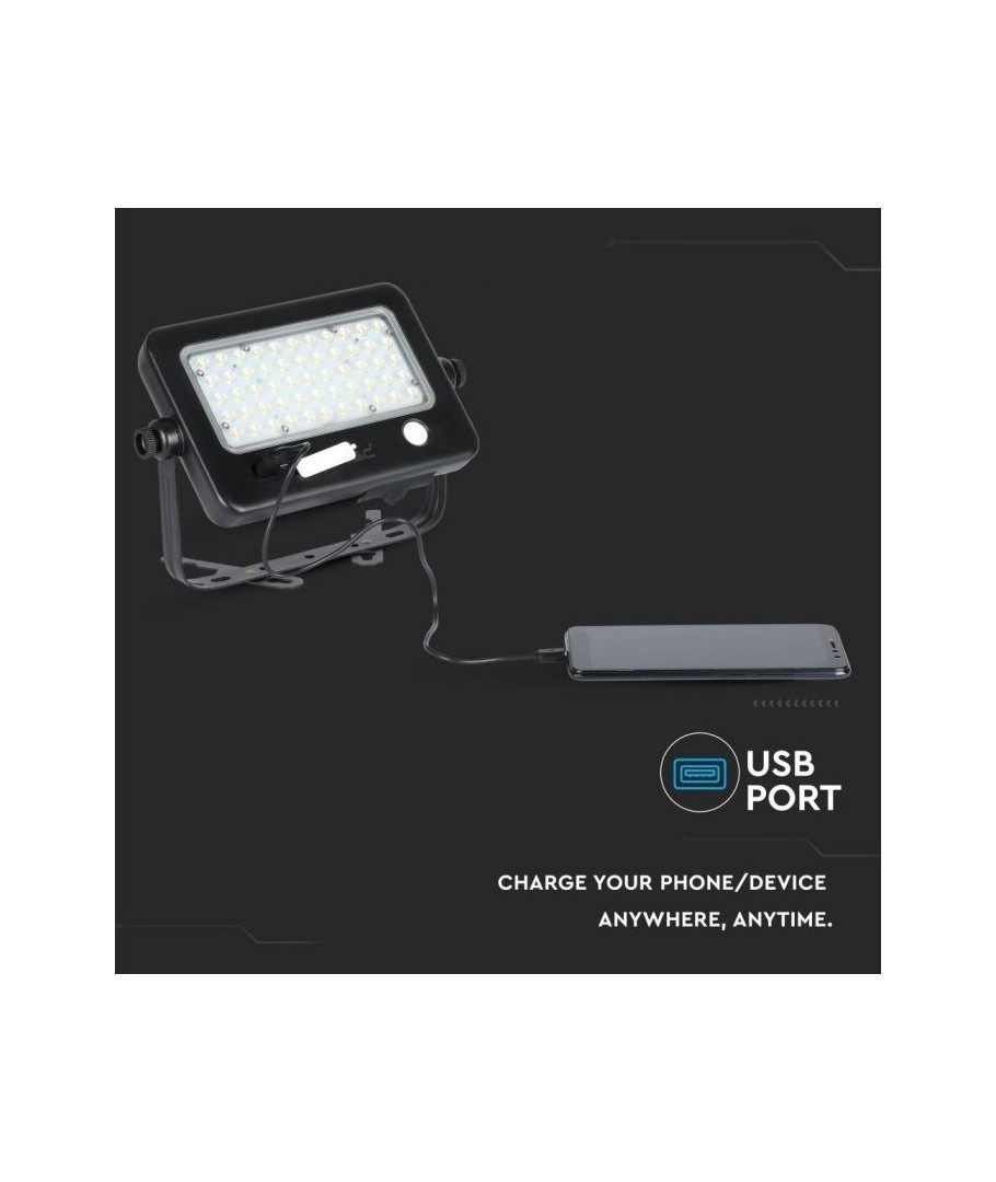 V-Tac 10W LED Zonne-energie schijnwerper - Zwart is de ideale oplossing voor buitenverlichting op zonne-energie. Met een zonnepaneel van 10W kan de schijnwerper in slechts 6-7 uur worden opgeladen. De schijnwerper heeft ook een handige USB-poort, waarmee andere apparaten kunnen worden opgeladen.