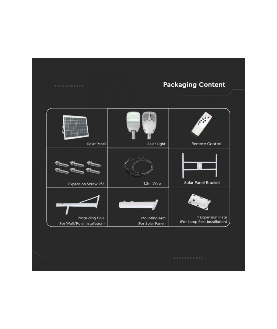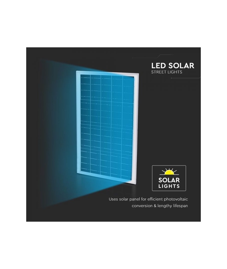 Met de V-Tac 50W Zonnecel Straatlamp LED krijgt u een combinatie van stijlvol design, technologisch geavanceerde functionaliteit en groene energiebenutting, die samen een product creëren dat zowel functioneel als ecologisch verantwoord is.