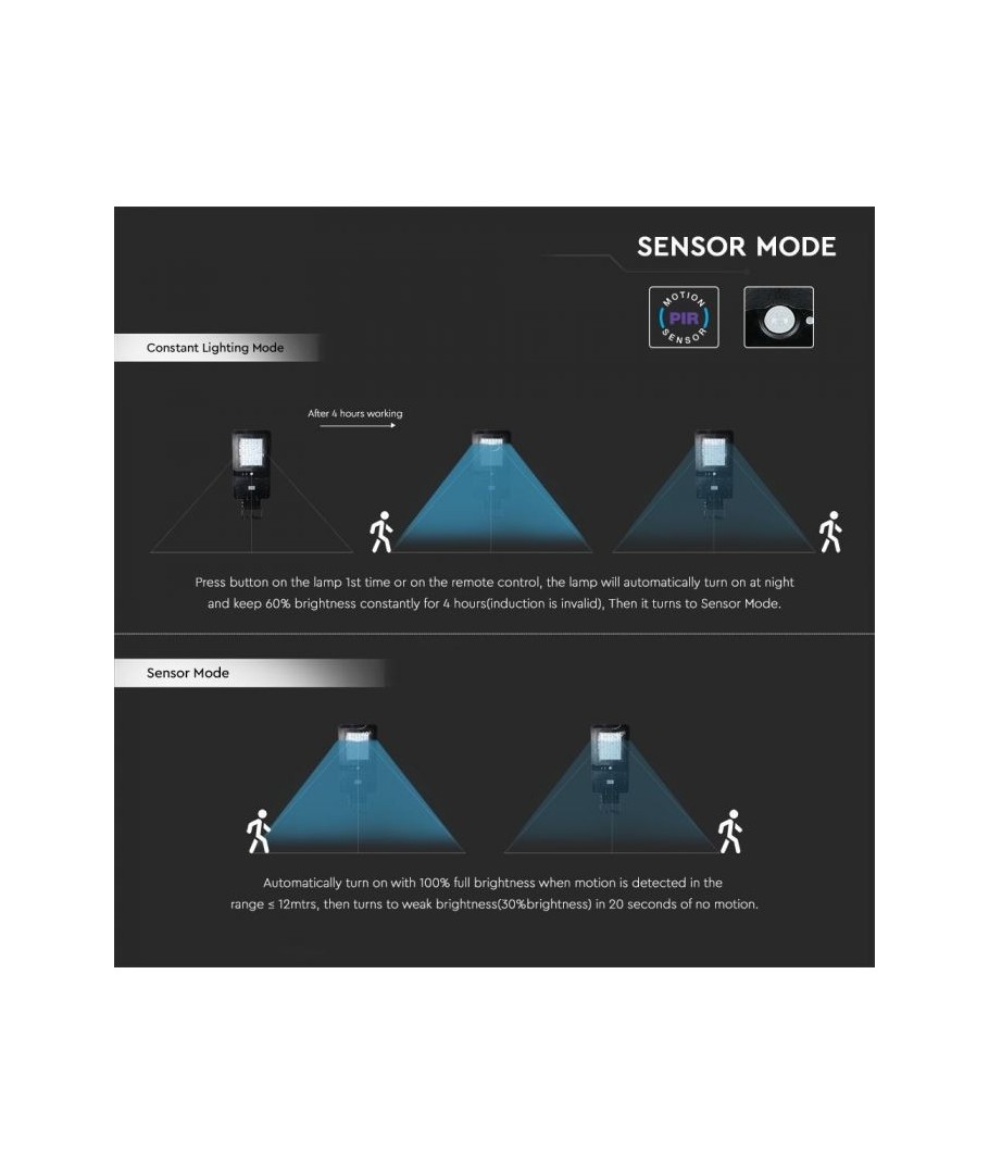 Deze lamp is ontworpen om verlichting te bieden zonder elektriciteit en is perfect voor buitenruimtes. Met zijn IP65-classificatie is hij waterdicht en duurzaam onder alle weersomstandigheden. Hij heeft een sensor die wordt geactiveerd binnen een bereik van 8-12 meter, wat hem ideaal maakt om beweging te detecteren en licht te geven wanneer dat nodig is. De lamp kan tot 36-120 uur werken na slechts 8-10 uur opladen, wat zorgt voor langdurige en betrouwbare verlichting. Kies deze straatlamp voor een efficiënte en milieuvriendelijke oplossing voor buitenverlichting!