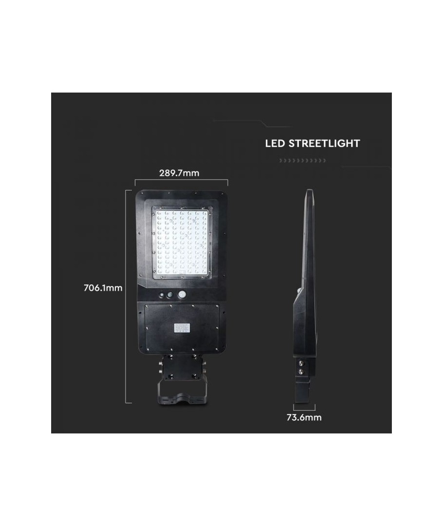 Ontdek efficiënte verlichting met deze praktische en milieuvriendelijke straatlamp. Deze 40W zonnecel straatlamp levert krachtige verlichting met een lichtsterkte van 4800 lumen, perfect voor het verlichten van grote buitenruimtes.