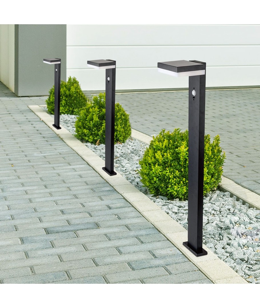 De lantaarnpaal is uitgerust met een praktische PIR sensor, die beweging detecteert en het licht automatisch inschakelt, wat zorgt voor energiebesparing en verhoogde veiligheid. Het ontwerp is gericht op functionaliteit en gebruikerservaring.