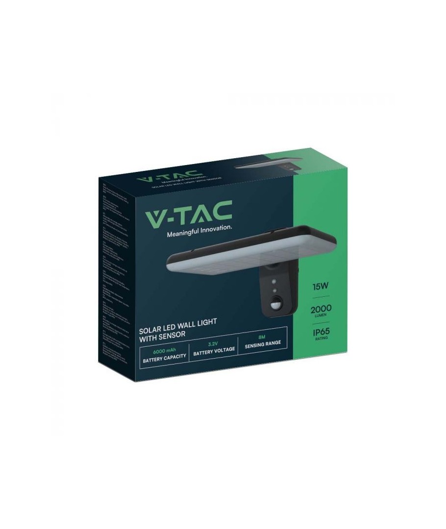Met de V-Tac 15W zonnecel wandlamp krijgt u niet alleen een lichtinstallatie, maar een combinatie van esthetiek, functionaliteit en energie-efficiëntie. Creëer een helderdere en veiligere buitenomgeving met deze uitzonderlijke verlichtingsoplossing.