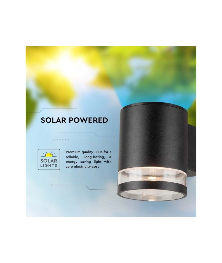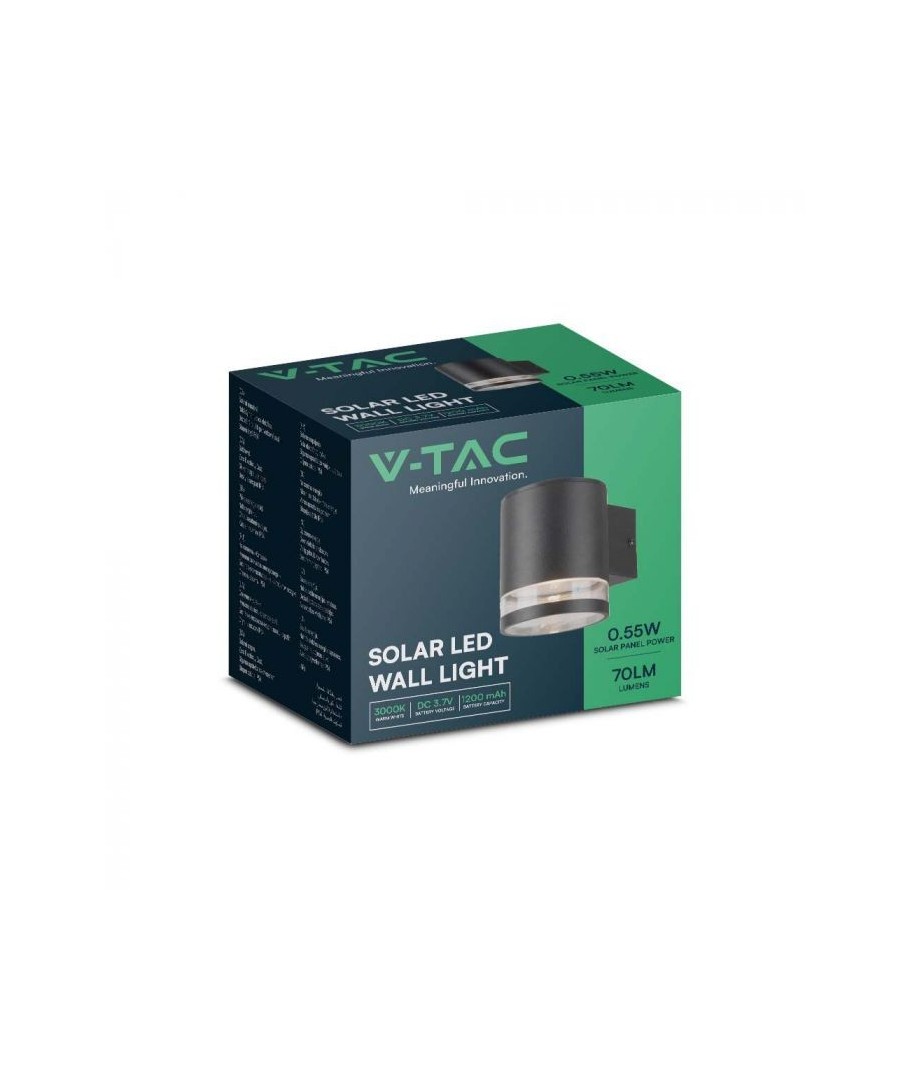Creëer een sfeervolle ambiance en verleng je buitenervaringen met de V-Tac 0,55W LED zonnecel wandlamp in zwart.
