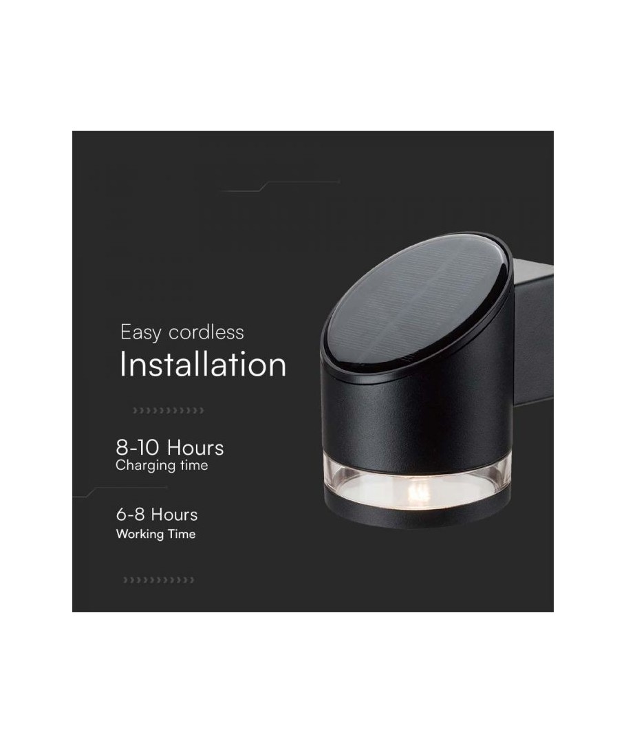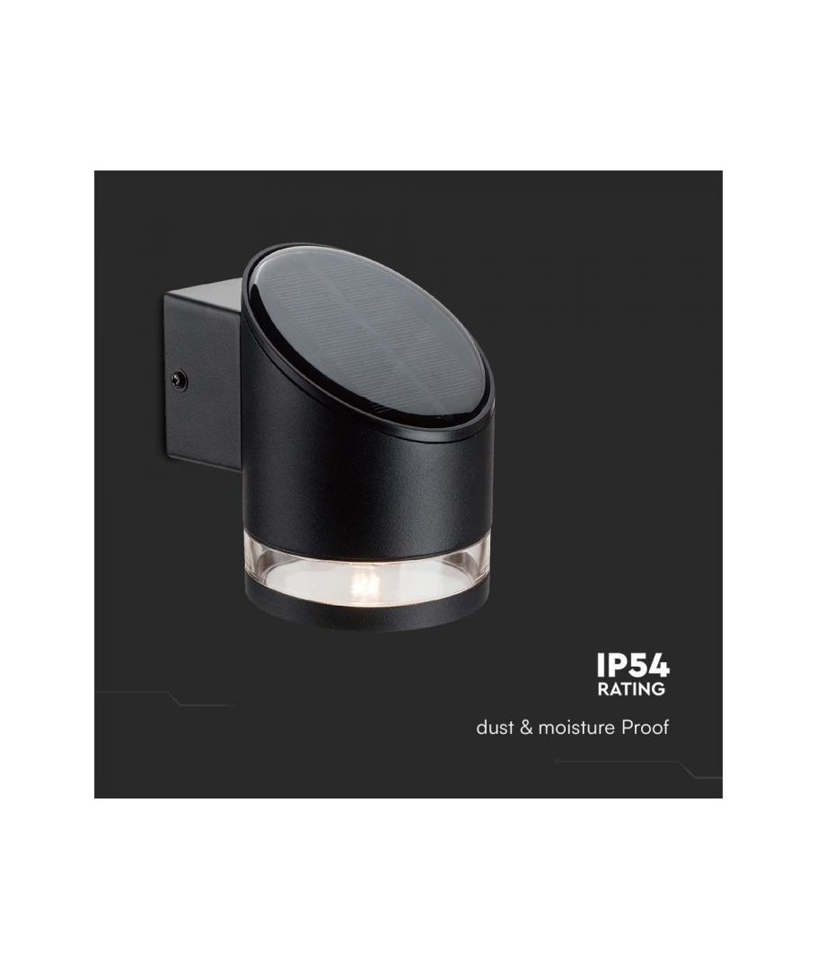 Deze zwarte wandlamp is de perfecte oplossing voor buitenverlichting. Met zijn IP54-classificatie is hij beschermd tegen stof en spatwater, waardoor hij geschikt is om de tuin of het terras te verlichten. Deze wandlamp beschikt over een unieke zonneceltechnologie die tot 6-8 uur licht geeft op één enkele lading. De ronde vorm en het elegante ontwerp maken het een stijlvolle accessoire voor elke buiteninrichting.