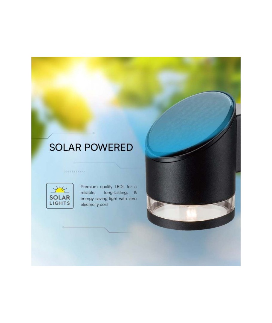 Geef uw buitenruimtes een stijlvolle en functionele upgrade met deze slimme zonnecel wandlamp. De lamp is ontworpen voor wie een milieuvriendelijke en onderhoudsvrije verlichtingsoplossing wenst. Met zijn zwarte, ronde vorm past hij perfect bij elke buitenesthetiek.