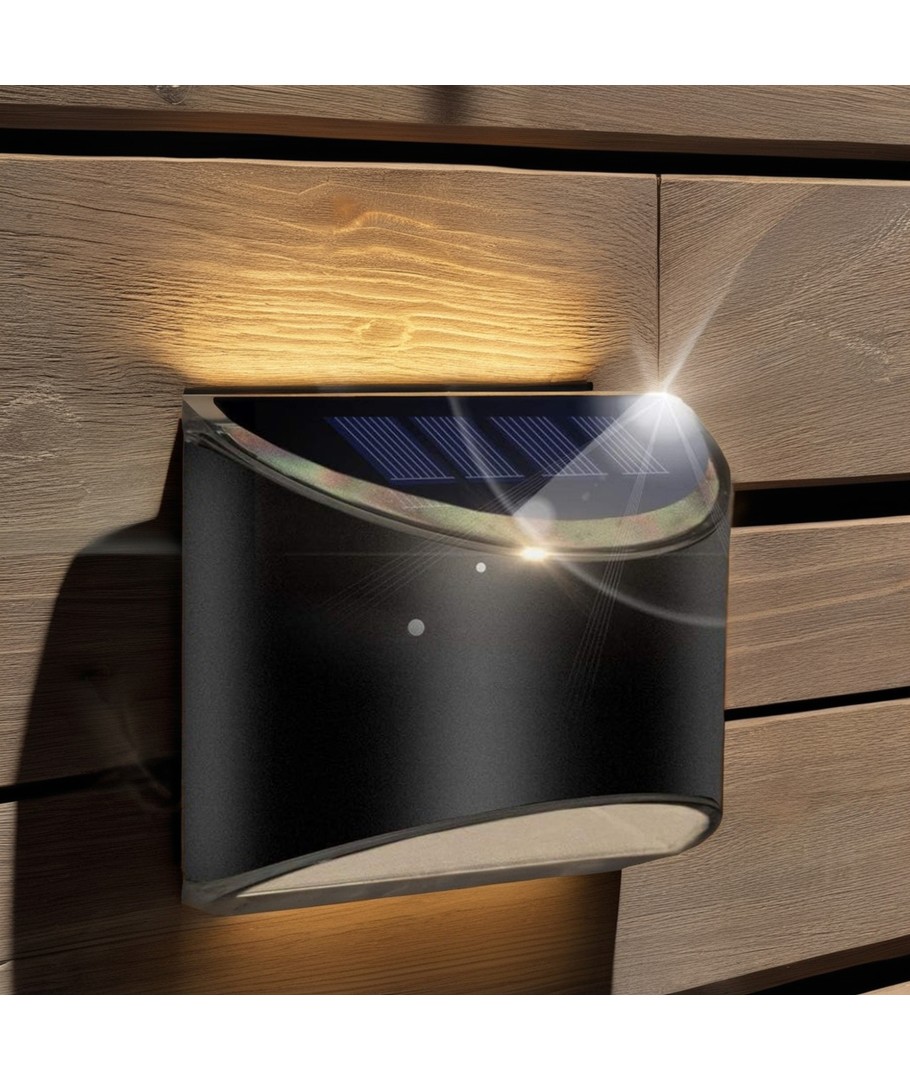 Ontdek de efficiënte en stijlvolle 2 stuks MIVO Zonnecel wandlampen LED in zwart, die een mooie wand-effect en functionaliteit combineren voor je buitenverlichting.