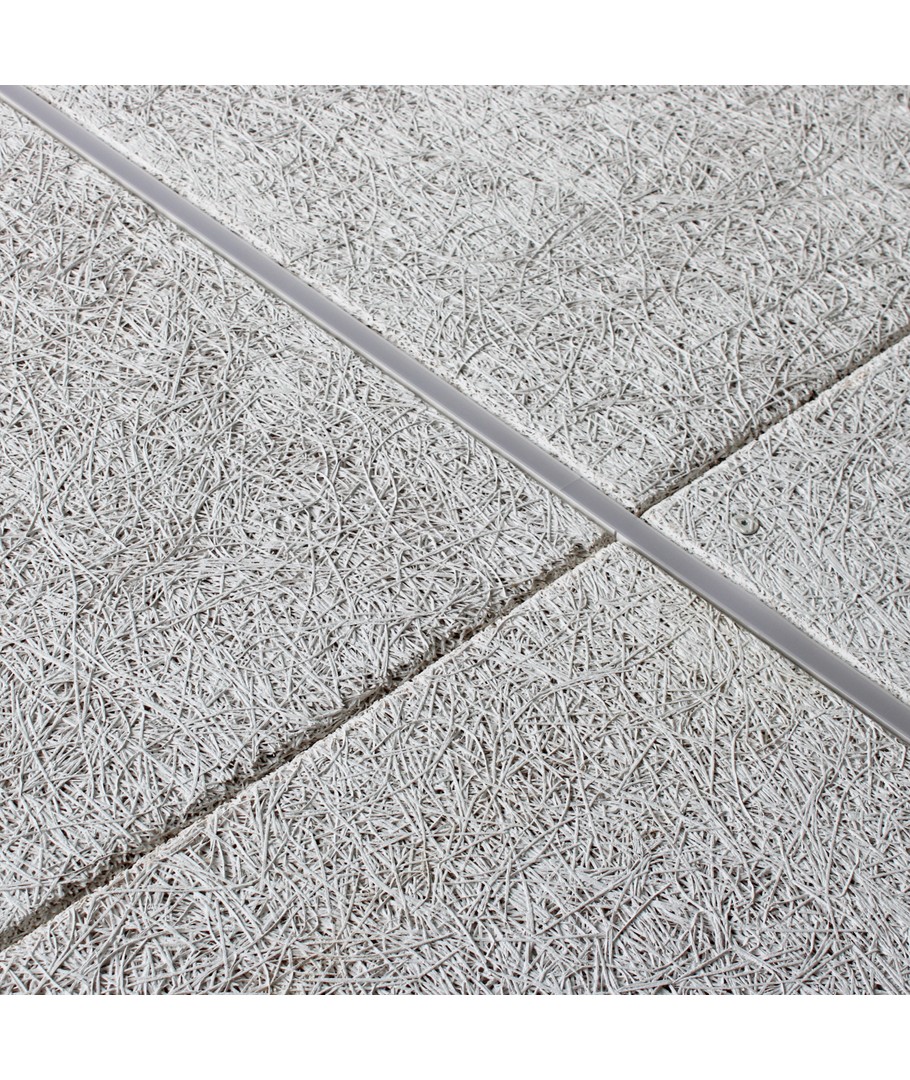 Troldtekt Rail 120 cm is de perfecte oplossing om een gelijkmatige en uniforme verlichting te creëren in ruimtes met Troldtekt akoestische plafonds. Deze rail ligt vlak met de Troldtekt-platen en vereist geen aanpassing van de omliggende platen, wat het ongelooflijk gemakkelijk maakt in gebruik.