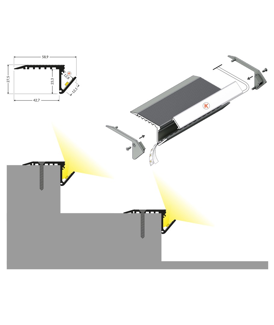 1m aluminiumprofiel UP-BOLD12 K
