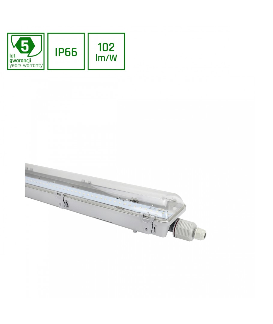Met de afmetingen 1275 x 38 x 83 mm is deze LED-lamp ontworpen om in de meeste ruimtes te passen zonder in de weg te zitten. Bovendien is hij geconstrueerd met een hoge IP66-classificatie, waardoor hij waterdicht is en geschikt voor omgevingen die robuuste en beschermde verlichting vereisen.