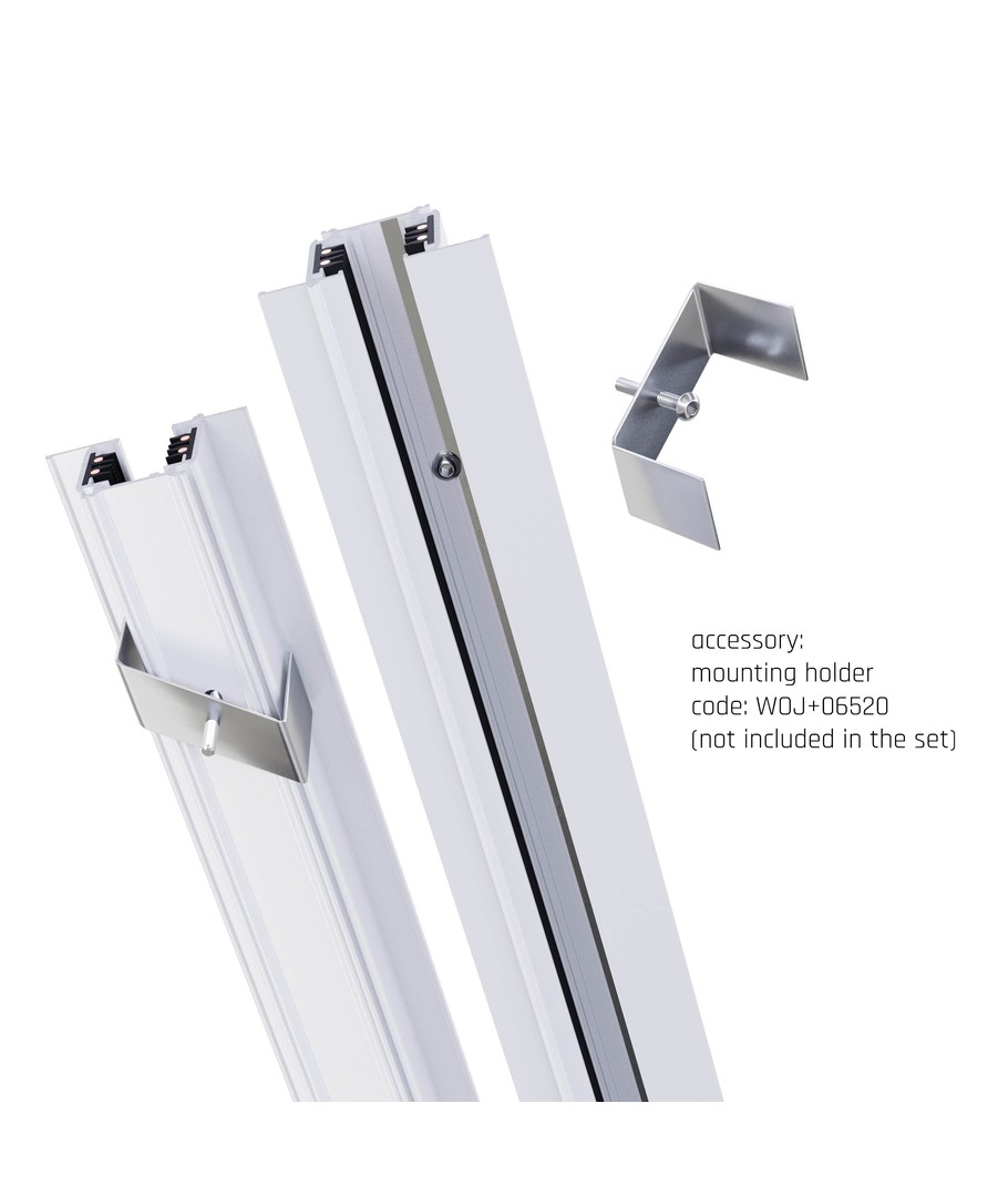 Met de afmetingen van 1000 x 36 x 55 mm is het ontwerp van de rail zowel compact als discreet, waardoor hij gemakkelijk in elk interieurontwerp te integreren is. Hij biedt aanpassingsmogelijkheden zonder concessies te doen aan de esthetiek. De gatmaat van 40x1006 mm zorgt ervoor dat de installatie net zo soepel verloopt als het ontwerp zelf.