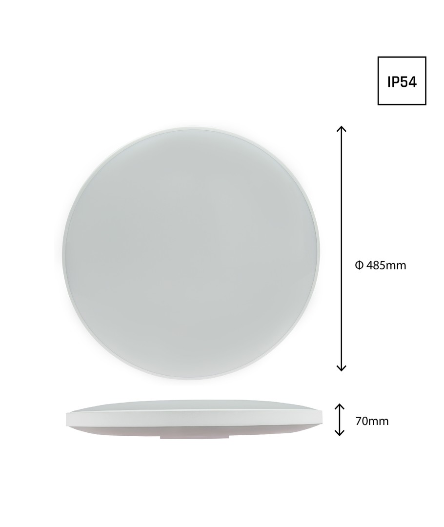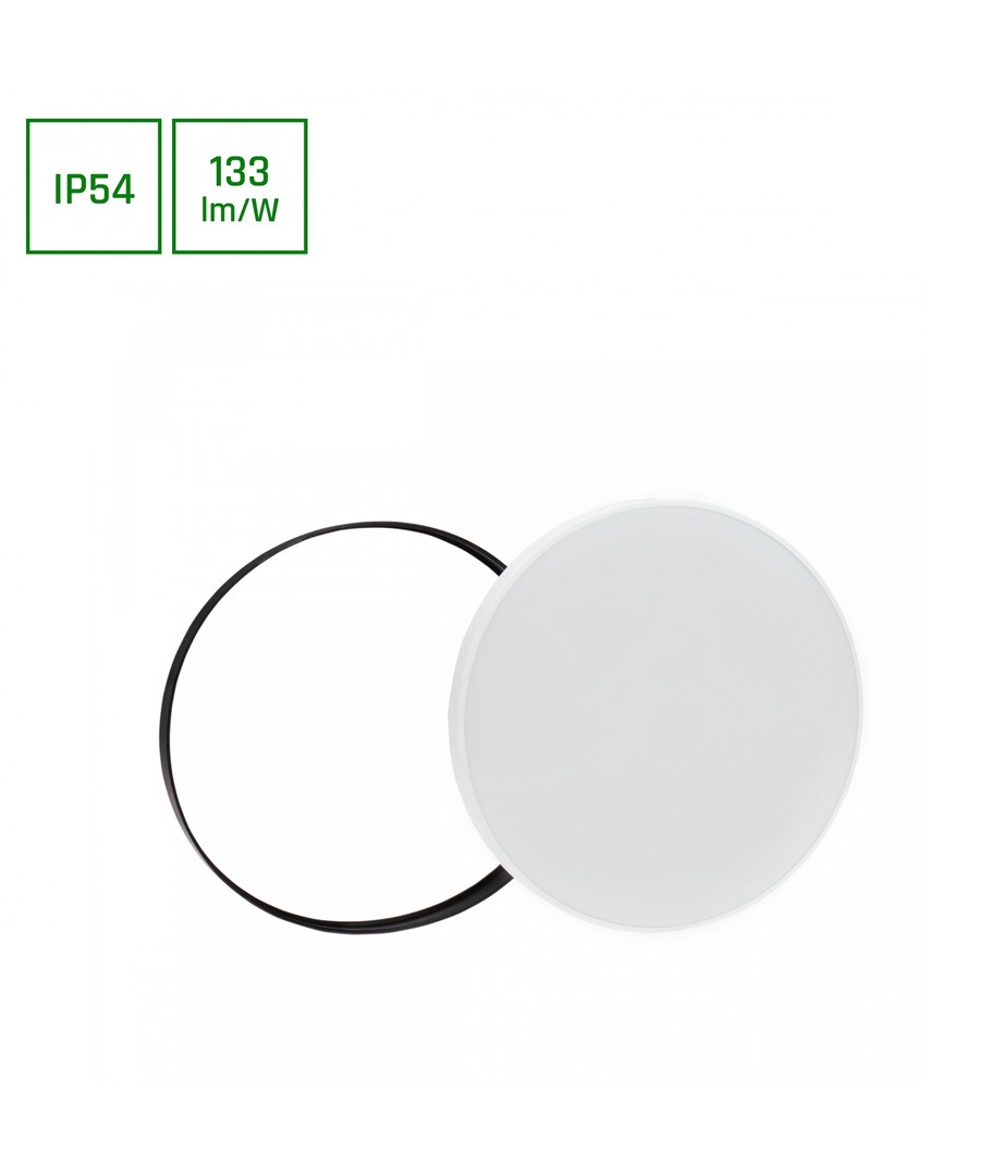 De lamp is beschermd met een IP54-classificatie, wat betekent dat hij bestand is tegen vochtige lucht en spatwater, waardoor hij geschikt is voor gebruik in ruimtes met een hogere luchtvochtigheid, zoals badkamers en wasruimtes.
