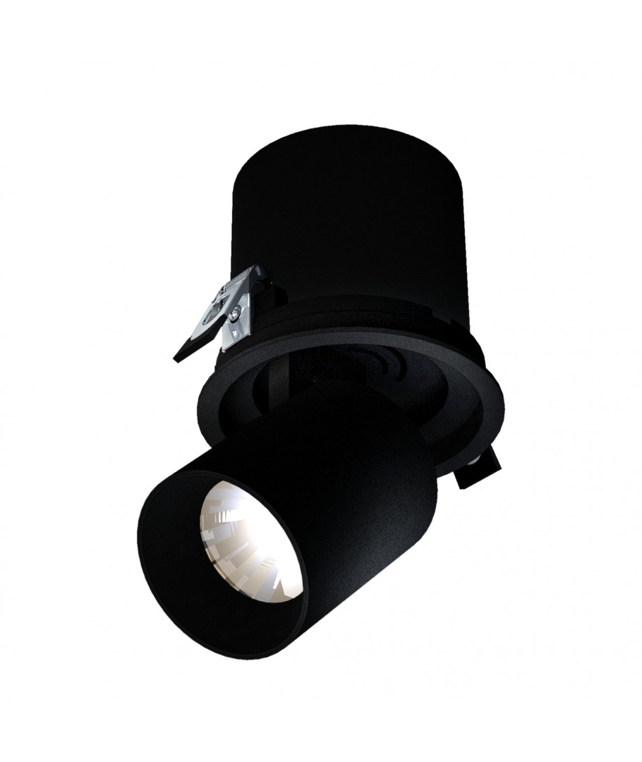 IN OUT - Model L is een flexibele inbouw downlight in een stijlvol zwart design, die verstelbare verlenging en richting biedt.