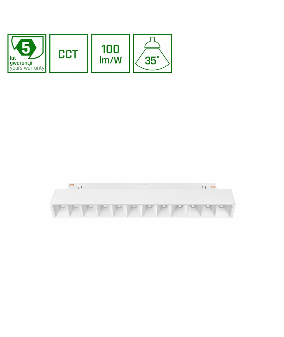 Het elegante System Shift CCT-Grid S Rail Licht biedt een vermogen van 12W en wordt eenvoudig aangesloten op een 48V voeding. Met een lichtsterkte van 750 lumen en een gefocust lichtgebied van 35 graden is dit verlichtingssysteem een ideale oplossing om een gecontroleerde en precieze verlichtingsomgeving te creëren. Het is perfect voor ruimtes waar geconcentreerd licht nodig is.