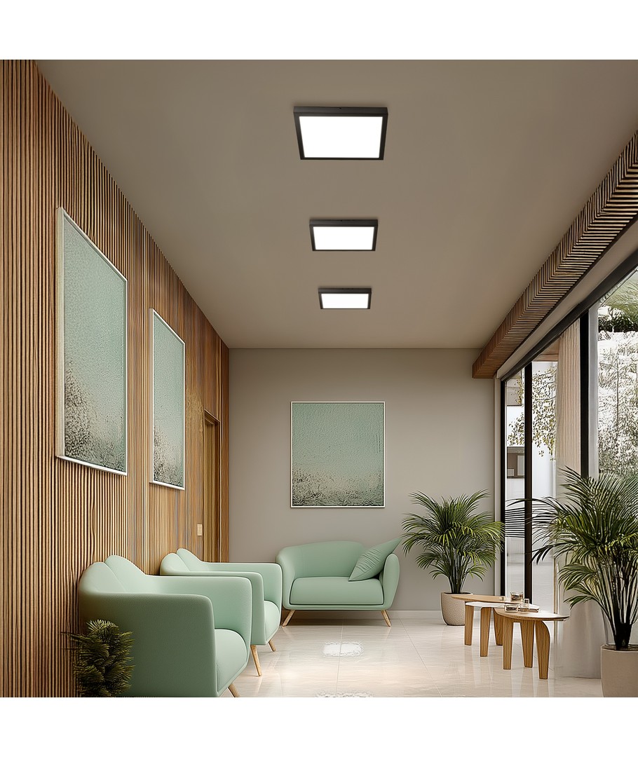 Robuuste LED-plafondlamp in een strak zwart design, perfect passend bij moderne ruimtes.