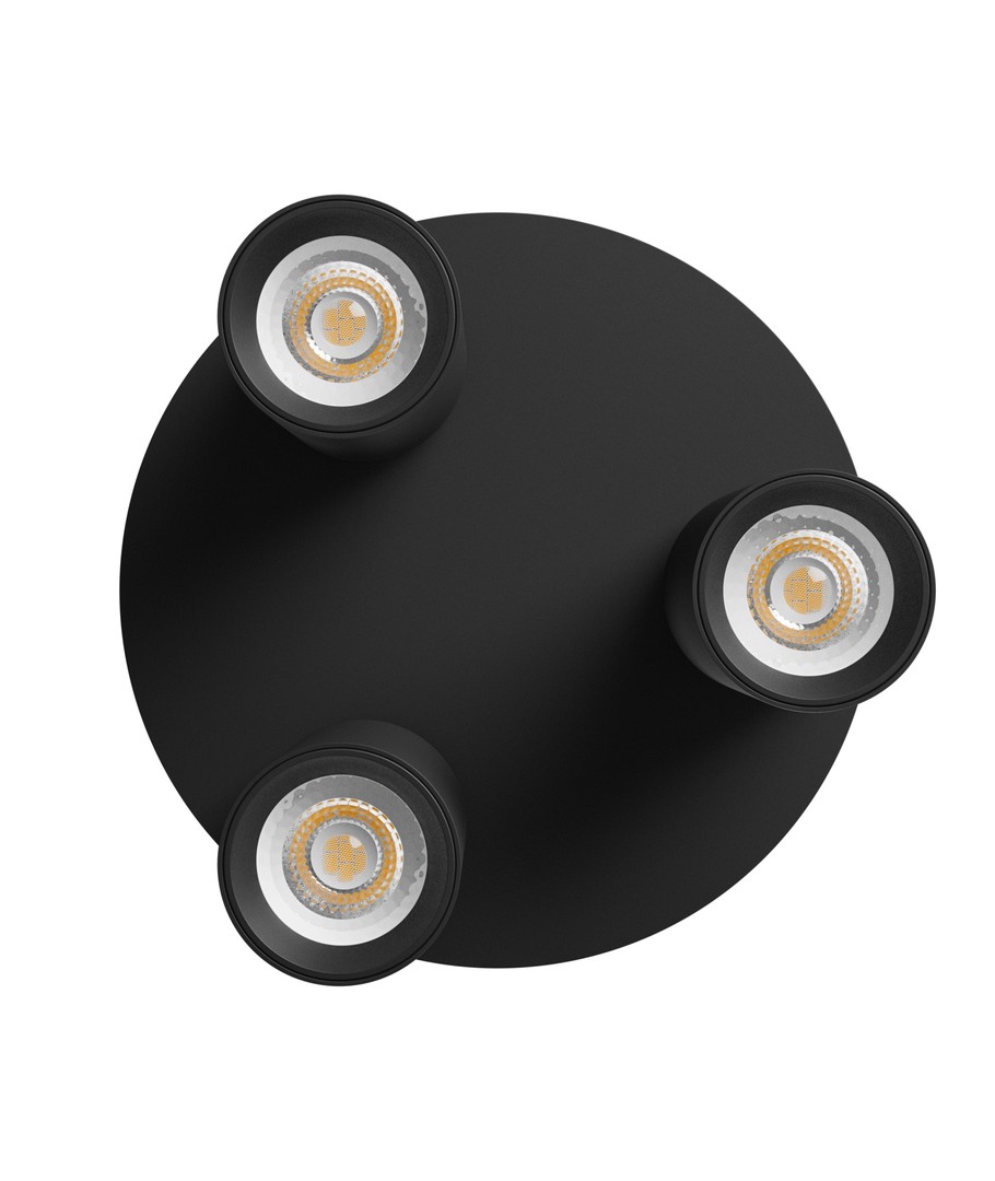 De ronde plafondlamp met 3 spots is een elegante en functionele oplossing voor het verlichten van binnenruimtes. Ontworpen in zwart aluminium, past deze perfect in moderne interieurs.