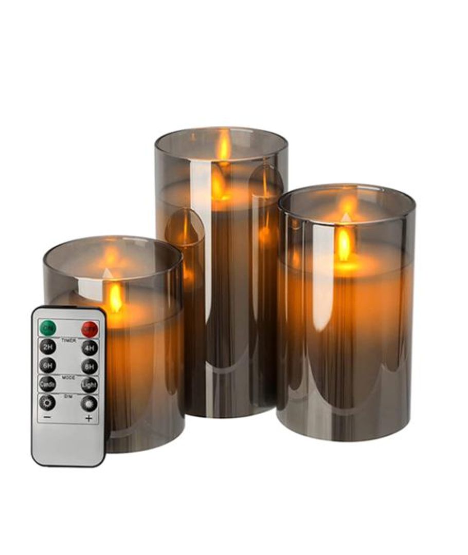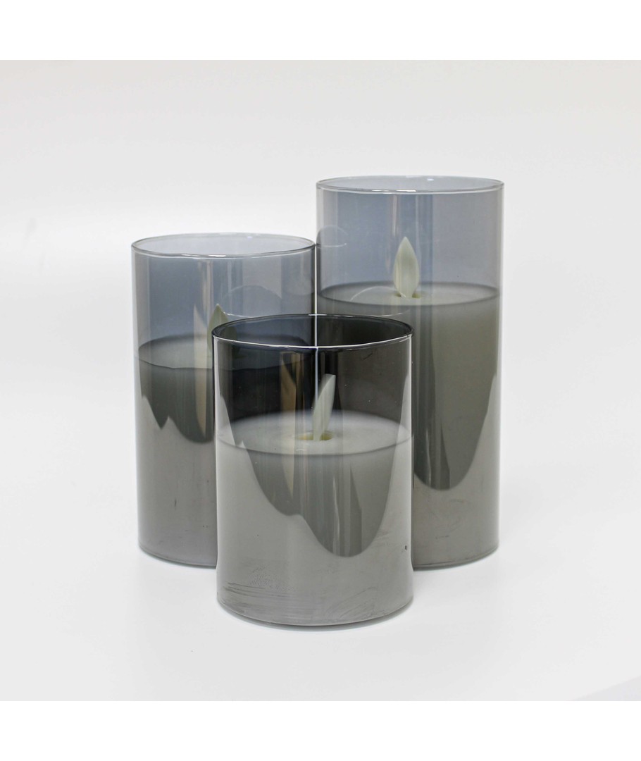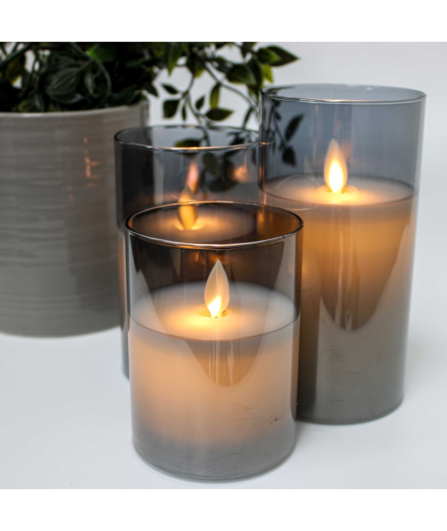 Ervaar de gezelligheid en de elegante sfeer met onze LED blokkaars set in rookglas, die echte was combineert met een realistisch vlam effect. Perfect om een warme ambiance in huis te creëren.