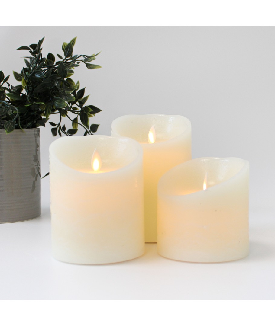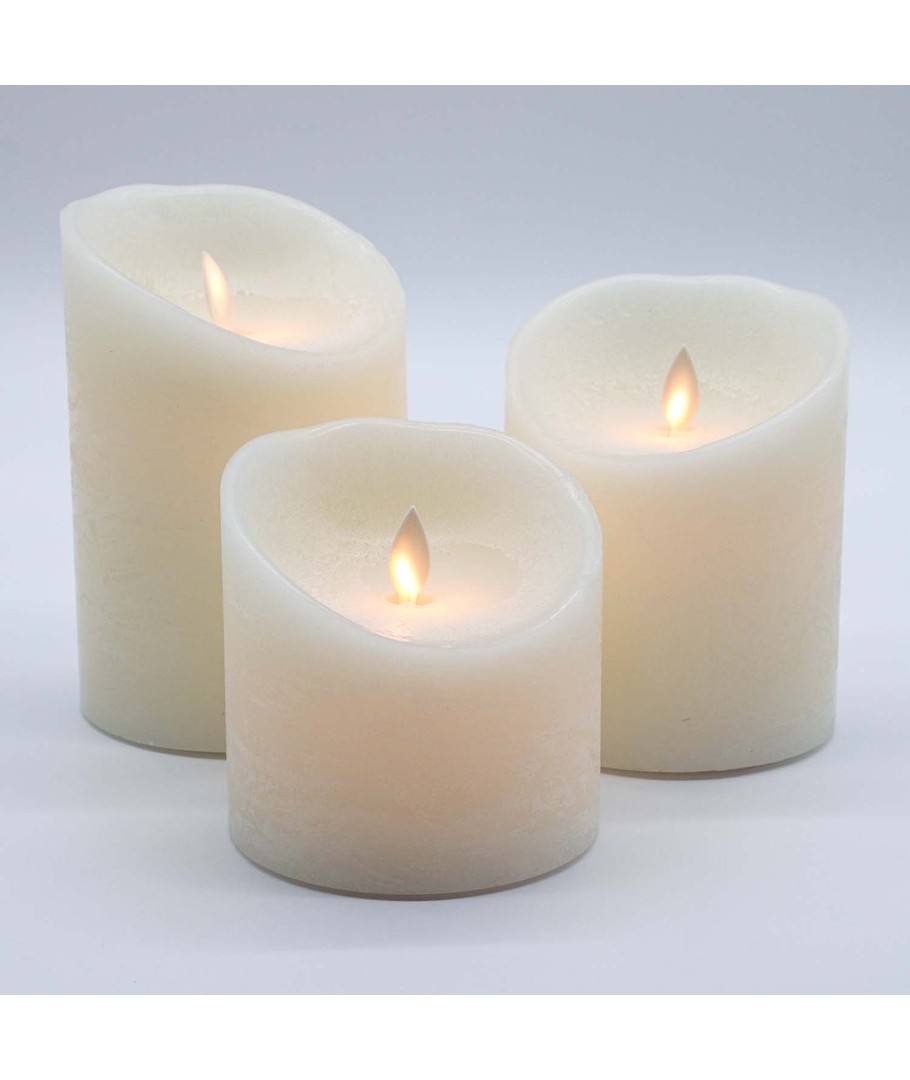 Ervaar een gezellige en veilige verlichting met onze elegante LED blokkaarsen, die worden geleverd in een set van drie met bewegende vlam en gemaakt van echte was voor een authentieke sfeer.