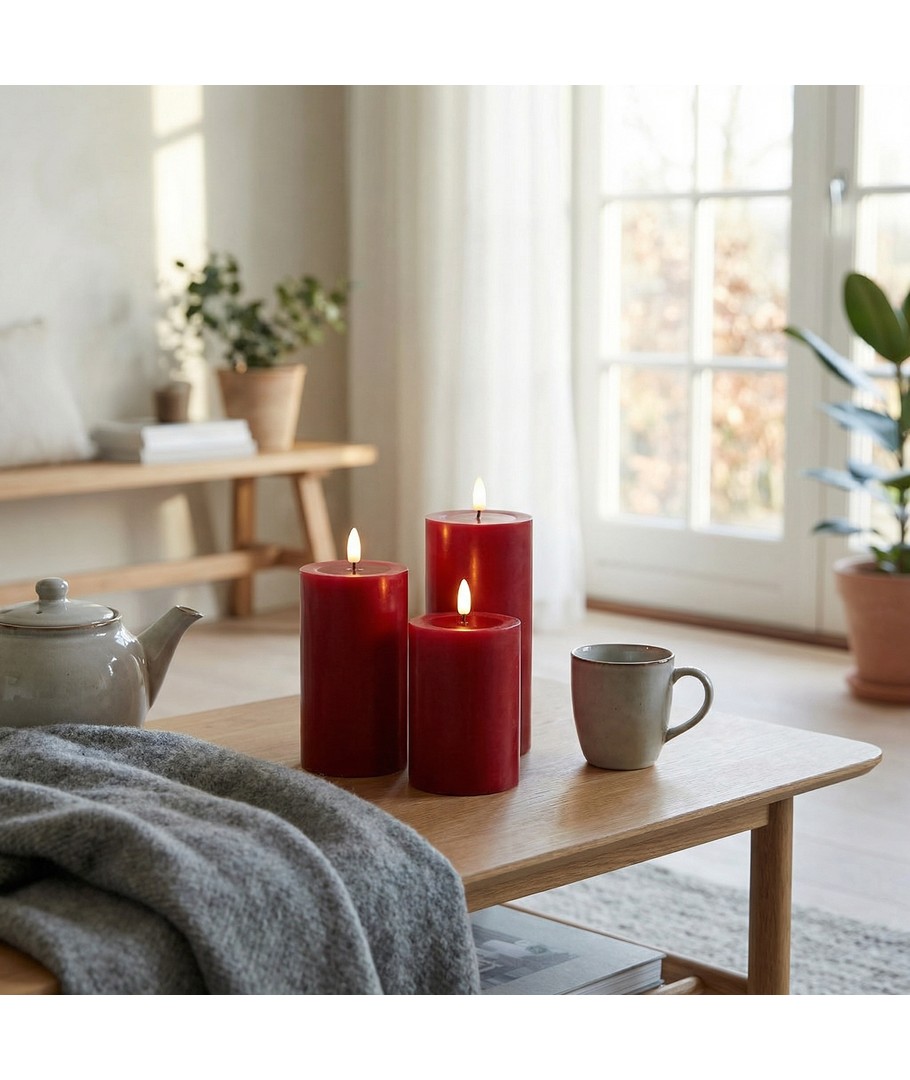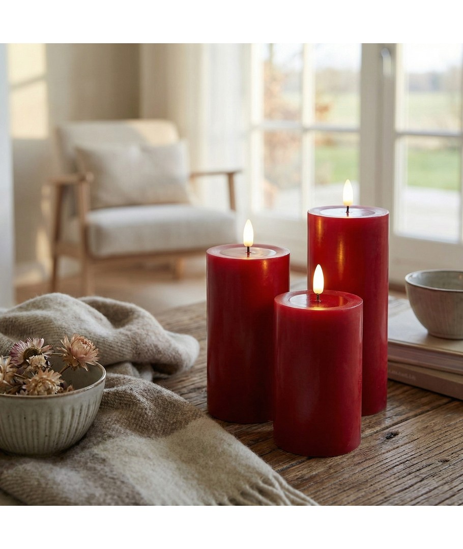 LED blokkaarsen zorgen voor een authentieke en gezellige verlichting in uw huis zonder de zorgen van echte vlammen. Deze bordeauxrode kaarsen creëren de perfecte sfeer met hun smelt-look en realistische vlam effect.