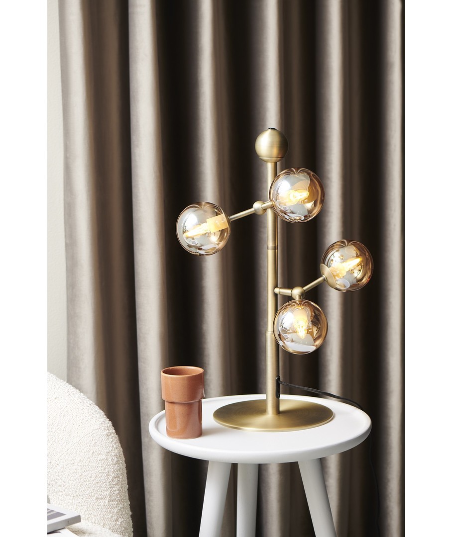 Ervaar de schoonheid van de Atom Tafellamp van Halo Design, een betoverende combinatie van klassiek design en moderne functionaliteit. De unieke uitstraling van deze lamp wordt benadrukt door materialen in antiek messing gecombineerd met stijlvol amberkleurig glas, wat elke interieurstijl een boost geeft.