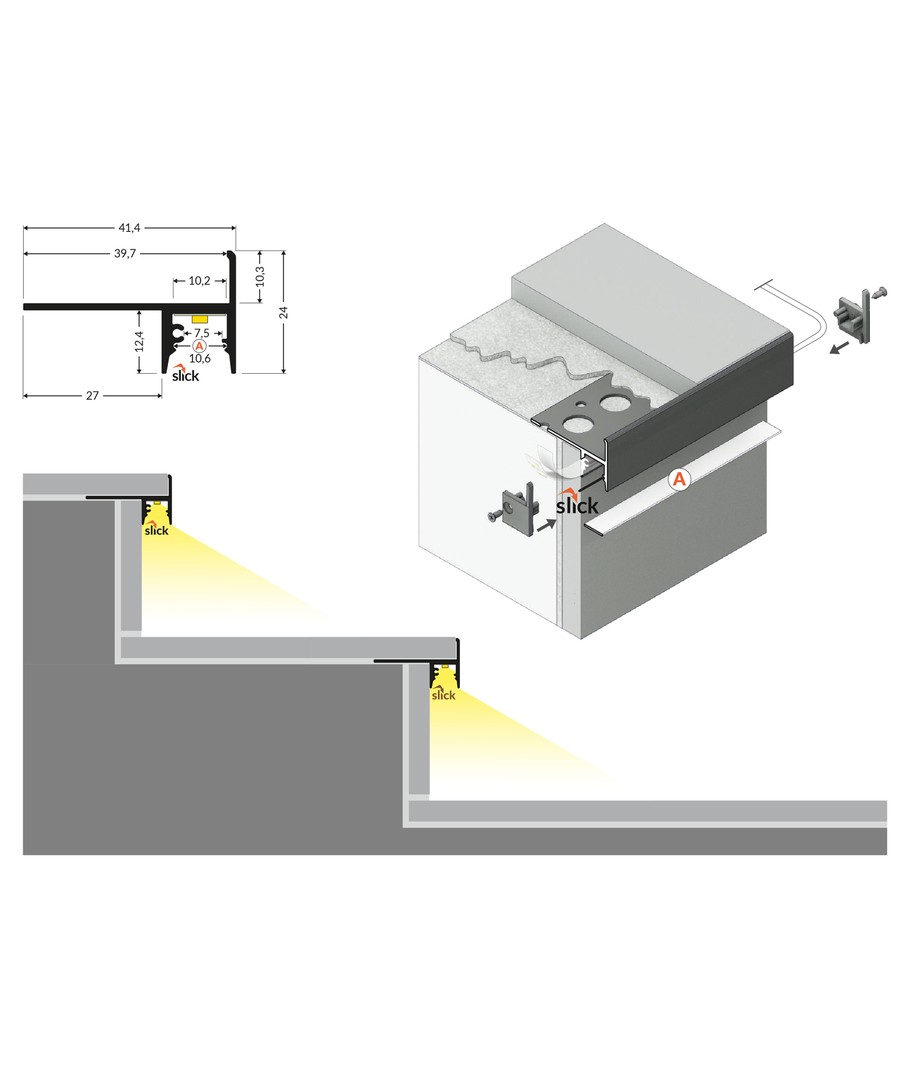 1m aluminium profiel UP-TILE10 A