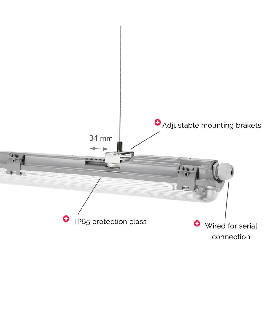 De armatuur is volledig bedraden voor eenvoudige seriële aansluiting.